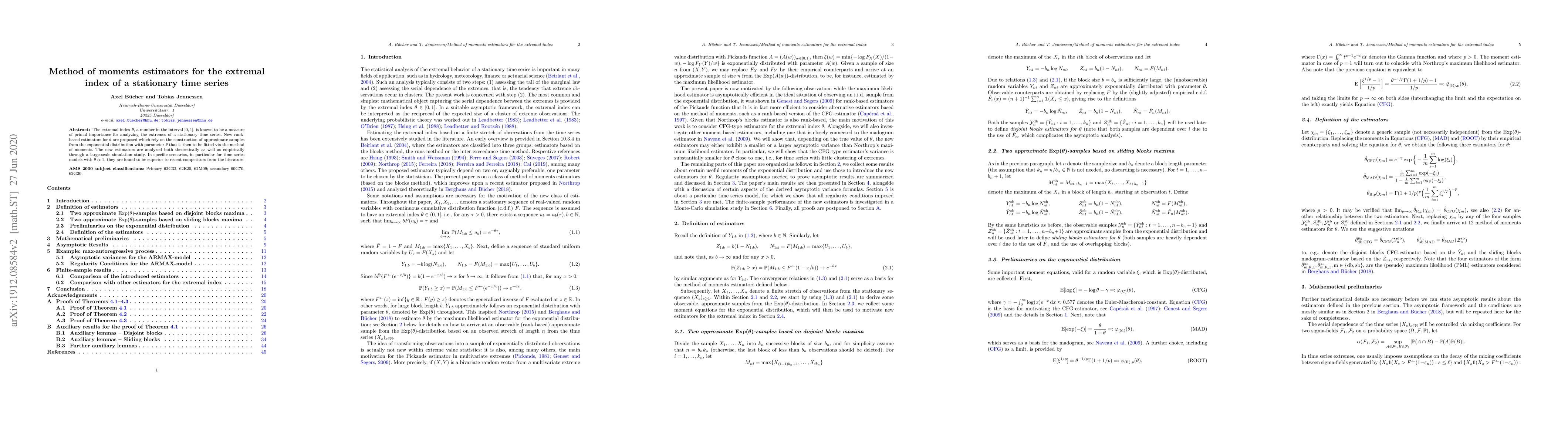 This paper proposes new rank-based method of moments estimators for the extremal index $\theta$ of a stationary time series, utilizing approximate samples from the exponential distribution. The proposed estimators outperform recent competitors in simulations, especially for series with $\theta \approx 1$.