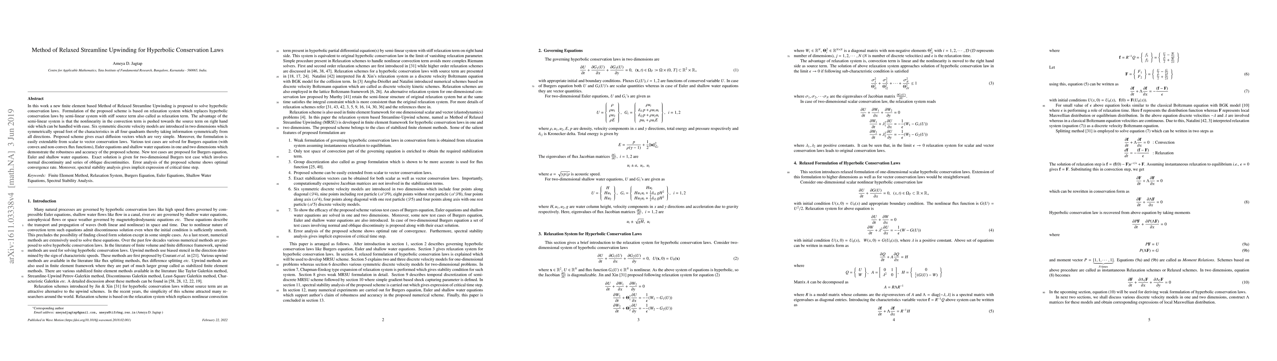 The paper proposes a new finite element Method of Relaxed Streamline Upwinding for solving hyperbolic conservation laws by formulating a semi-linear relaxation system. The scheme demonstrates robustness and accuracy through various test cases, including Burgers, Euler, and shallow water equations, and shows optimal convergence and spectral stability.