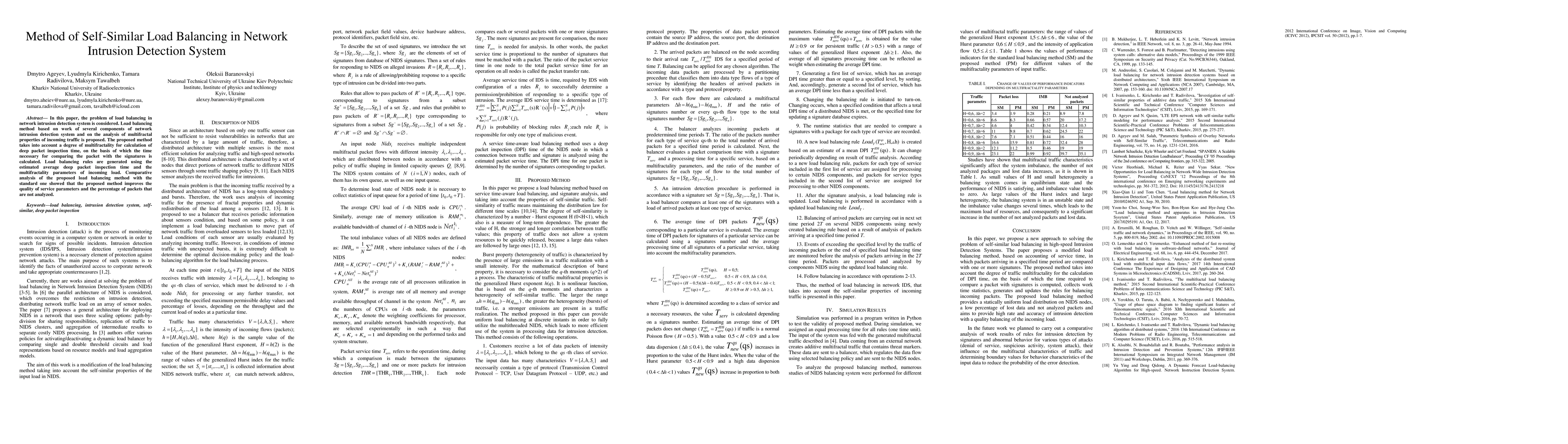This paper proposes a self-similar load balancing method for network intrusion detection systems, leveraging multifractal analysis of incoming traffic to optimize deep packet inspection time. Comparative analysis indicates improved service quality and reduced unanalyzed packets compared to standard methods.