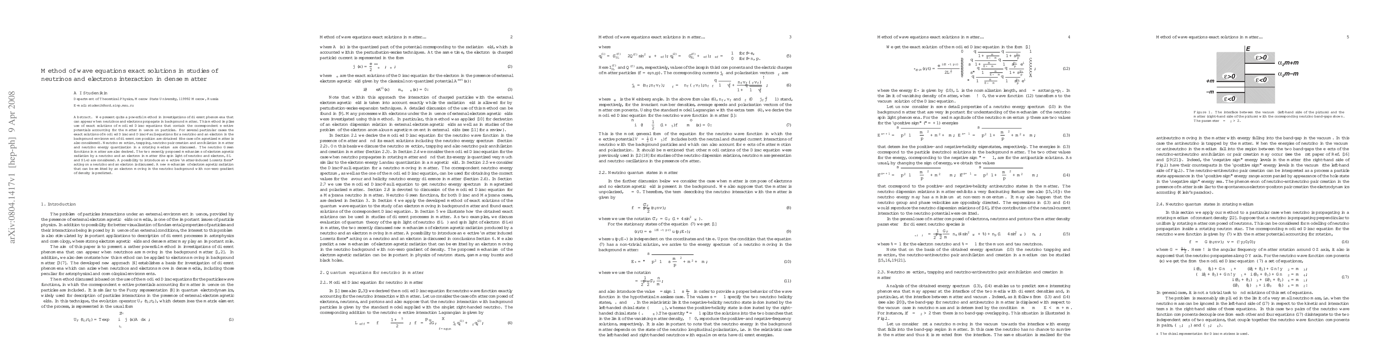 We present quite a powerful method in investigations of different phenomena that can appear when neutrinos and electrons propagate in background matter. This method implies use of exact solutions of modified Dirac equations that contain the correspondent effective potentials accounting for the matter influence on particles. For several particular cases the exact solutions of modified Dirac and Dirac-Pauli equations for a neutrino and an electron in the background environment of different composition are obtained (the case of magnetized matter is also considered). Neutrino reflection, trapping, neutrino pair creation and annihilation in matter and neutrino energy quantization in a rotating medium are discussed. The neutrino Green functions in matter are also derived. The two recently proposed mechanisms of electromagnetic radiation by a neutrino and an electron in matter (the spin light of neutrino and electron, $SL\nu$ and $SLe$) are considered. A possibility to introduce an effective "matter-induced Lorentz force" acting on a neutrino and an electron is discussed. A new mechanism of electromagnetic radiation that can be emitted by an electron moving in the neutrino background with non-zero gradient of density is predicted.