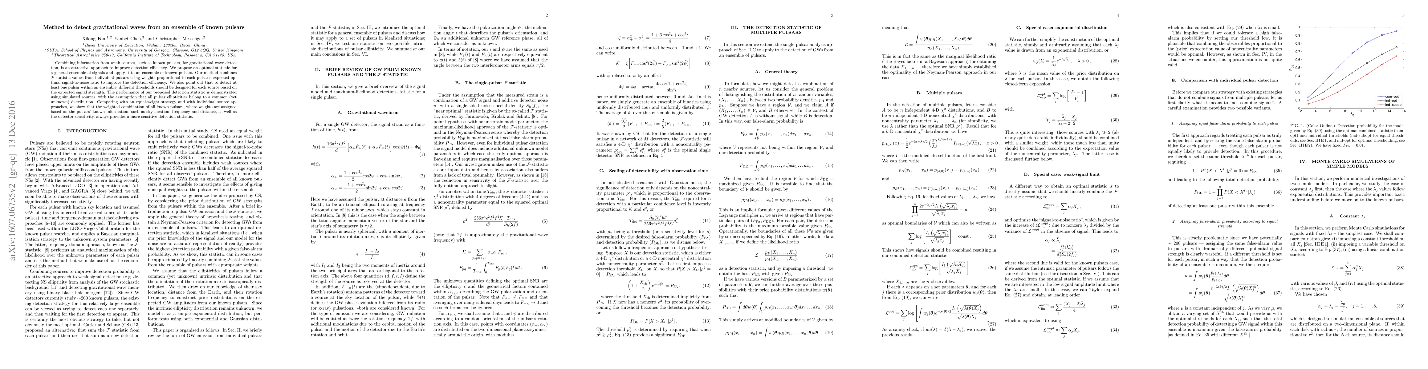 This research introduces an optimal method to detect gravitational waves by combining data from known pulsars, improving detection efficiency. The proposed statistic assigns weights proportional to each pulsar's expected signal-to-noise ratio, outperforming equal-weight and individual approaches.