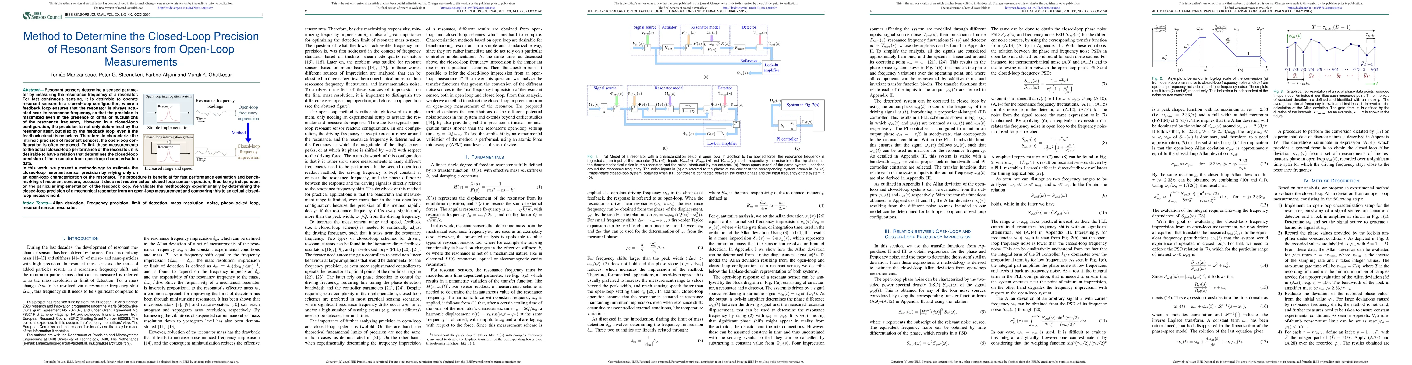 This paper presents a methodology to estimate the closed-loop precision of resonant sensors using only open-loop characterization data, without requiring actual closed-loop operation. The method is validated experimentally by comparing estimated closed-loop precision from open-loop measurements to actual closed-loop measurements of a mechanical resonator.
