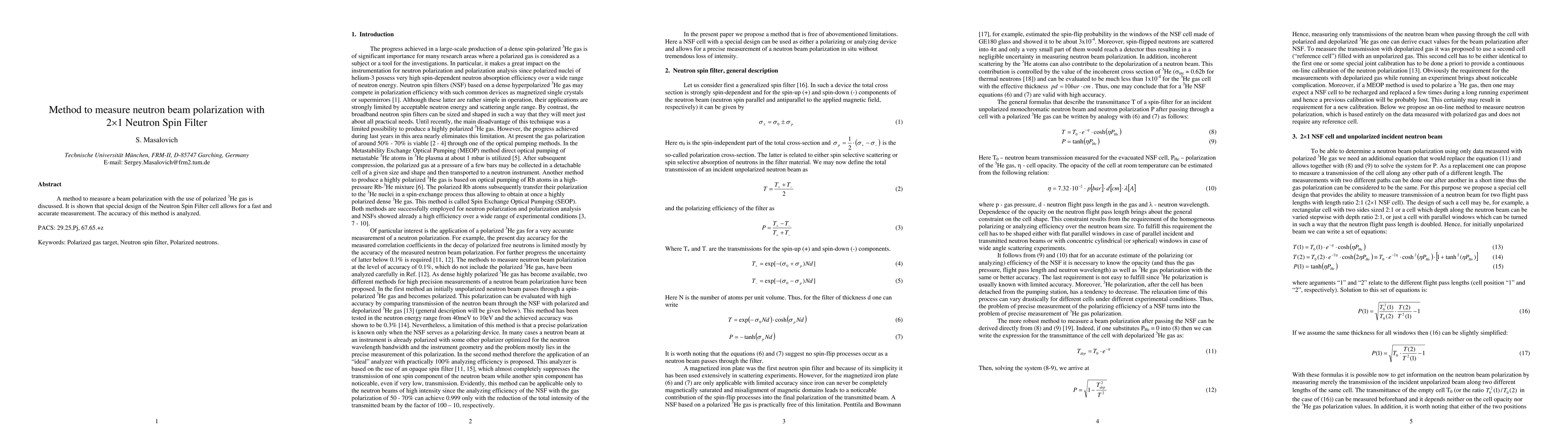 A method to measure a beam polarization with the use of polarized 3He gas is discussed. It is shown that special design of the Neutron Spin Filter cell allows for a fast and accurate measurement. The accuracy of this method is analyzed.