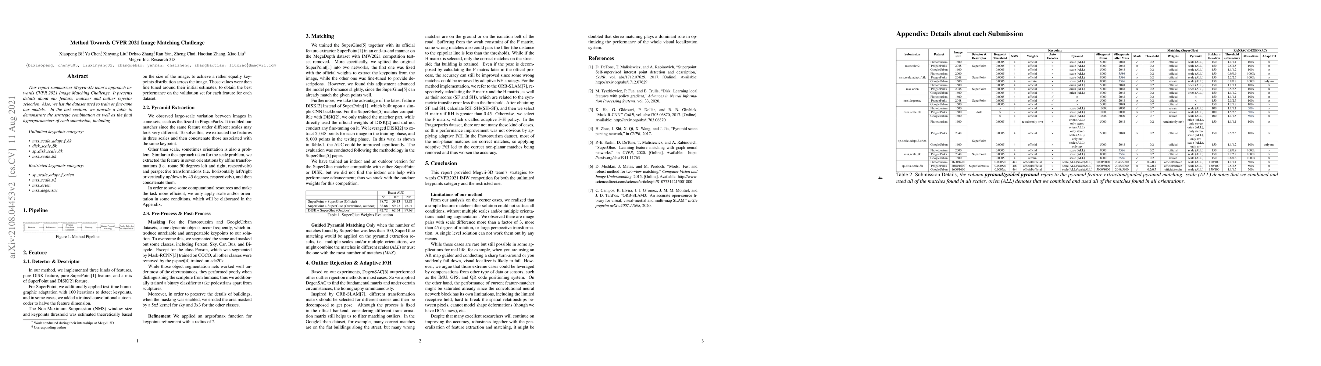 This report describes Megvii-3D team's approach towards CVPR 2021 Image Matching Workshop.