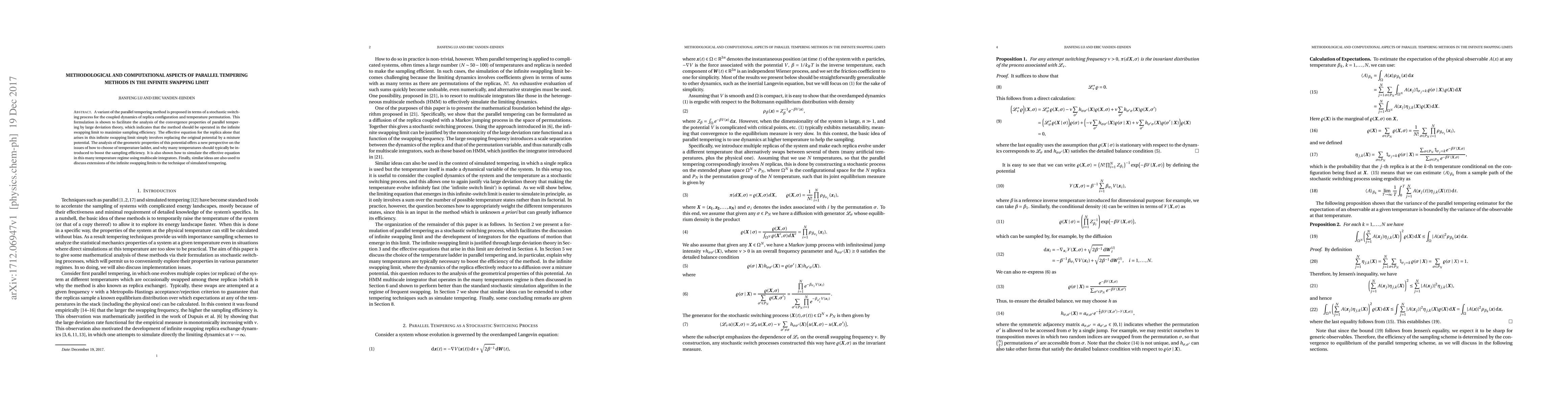 This paper proposes a variant of parallel tempering using stochastic switching for replica configuration and temperature permutation, demonstrating that optimal sampling efficiency is achieved in the infinite swapping limit. The analysis reveals the geometric properties of a mixture potential that informs the choice of temperature ladder and the necessity of multiple temperatures for enhanced sampling.