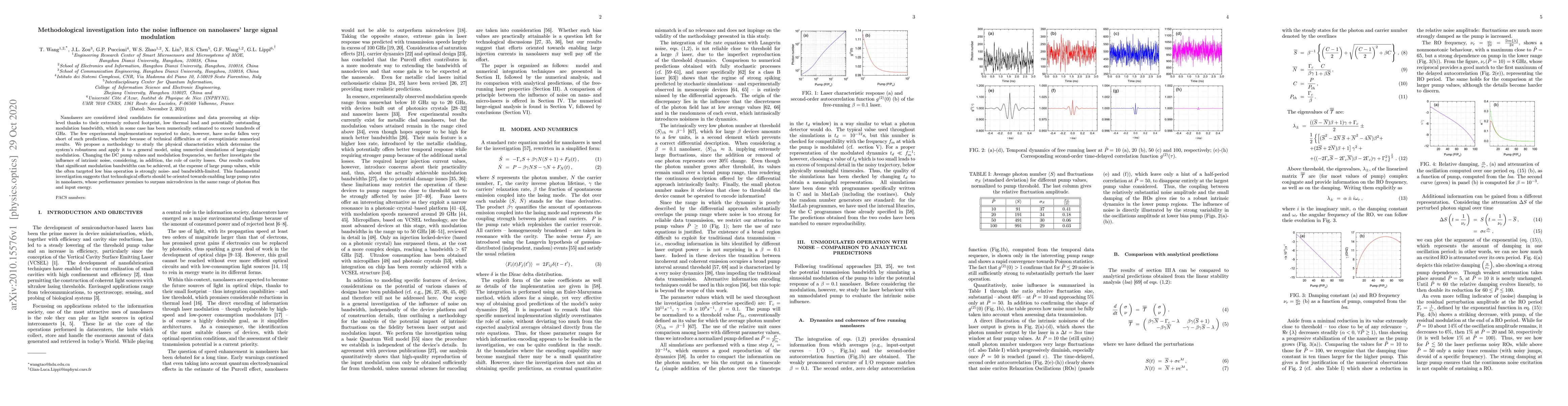 Nanolasers are considered ideal candidates for communications and data processing at chip-level thanks to their extremely reduced footprint, low thermal load and potentially outstanding modulation bandwidth, which in some case has been numerically estimated to exceed hundreds of GHz. The few experimental implementations reported to date, however, have so-far fallen very short of such predictions, whether because of technical difficulties or of overoptimistic numerical results. We propose a methodology to study the physical characteristics which determine the system's robustness and apply it to a general model, using numerical simulations of large-signal modulation. Changing the DC pump values and modulation frequencies, we further investigate the influence of intrinsic noise, considering, in addition, the role of cavity losses. Our results confirm that significant modulation bandwidths can be achieved, at the expense of large pump values, while the often targeted low bias operation is strongly noise- and bandwidth-limited. This fundamental investigation suggests that technological efforts should be oriented towards enabling large pump rates in nanolasers, whose performance promises to surpass microdevices in the same range of photon flux and input energy.