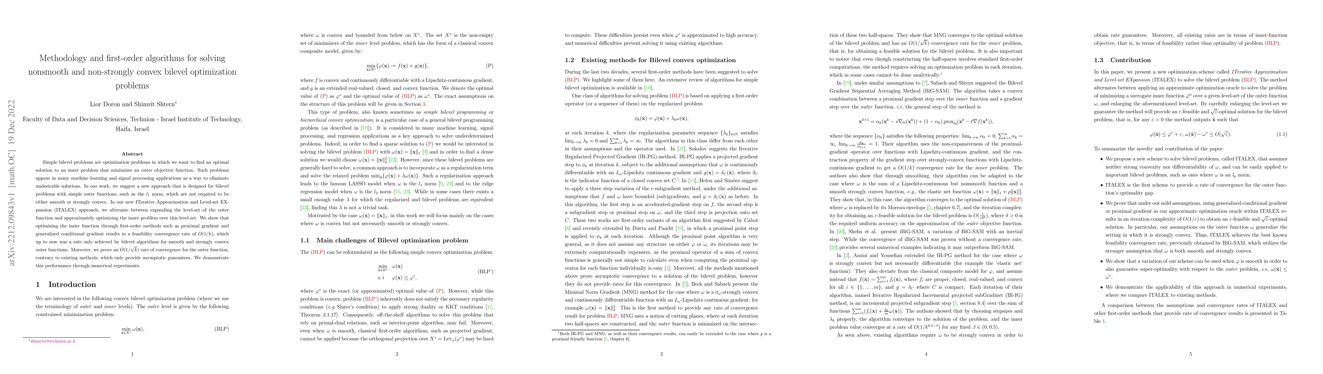 Simple bilevel problems are optimization problems in which we want to find an optimal solution to an inner problem that minimizes an outer objective function. Such problems appear in many machine learning and signal processing applications as a way to eliminate undesirable solutions. %However, since these problems do not satisfy regularity conditions, they are often hard to solve exactly and are usually solved via iterative regularization. In the past few years, several algorithms were proposed to solve these bilevel problems directly and provide a rate for obtaining feasibility, assuming that the outer function is strongly convex. In our work, we suggest a new approach that is designed for bilevel problems with simple outer functions, such as the $l_1$ norm, which are not required to be either smooth or strongly convex. In our new ITerative Approximation and Level-set EXpansion (ITALEX) approach, we alternate between expanding the level-set of the outer function and approximately optimizing the inner problem over this level-set. We show that optimizing the inner function through first-order methods such as proximal gradient and generalized conditional gradient results in a feasibility convergence rate of $O(1/k)$, which up to now was a rate only achieved by bilevel algorithms for smooth and strongly convex outer functions. Moreover, we prove an $O(1/\sqrt{k})$ rate of convergence for the outer function, contrary to existing methods, which only provide asymptotic guarantees. We demonstrate this performance through numerical experiments.