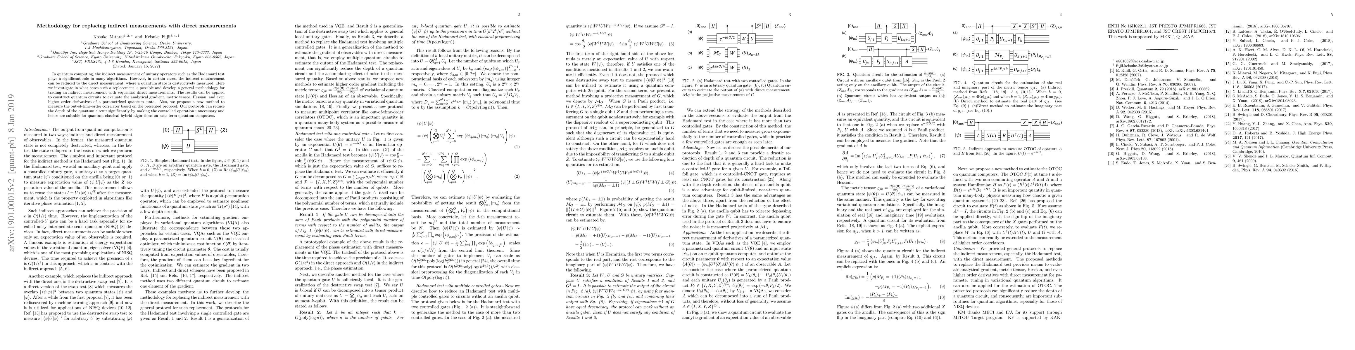 In quantum computing, the indirect measurement of unitary operators such as the Hadamard test plays a significant role in many algorithms. However, in certain cases, the indirect measurement can be reduced to the direct measurement, where a quantum state is destructively measured. Here we investigate in what cases such a replacement is possible and develop a general methodology for trading an indirect measurement with sequential direct measurements. The results can be applied to construct quantum circuits to evaluate the analytical gradient, metric tensor, Hessian, and even higher order derivatives of a parametrized quantum state. Also, we propose a new method to measure the out-of-time-order correlator based on the presented protocol. Our protocols can reduce the depth of the quantum circuit significantly by making the controlled operation unnecessary and hence are suitable for quantum-classical hybrid algorithms on near-term quantum computers.