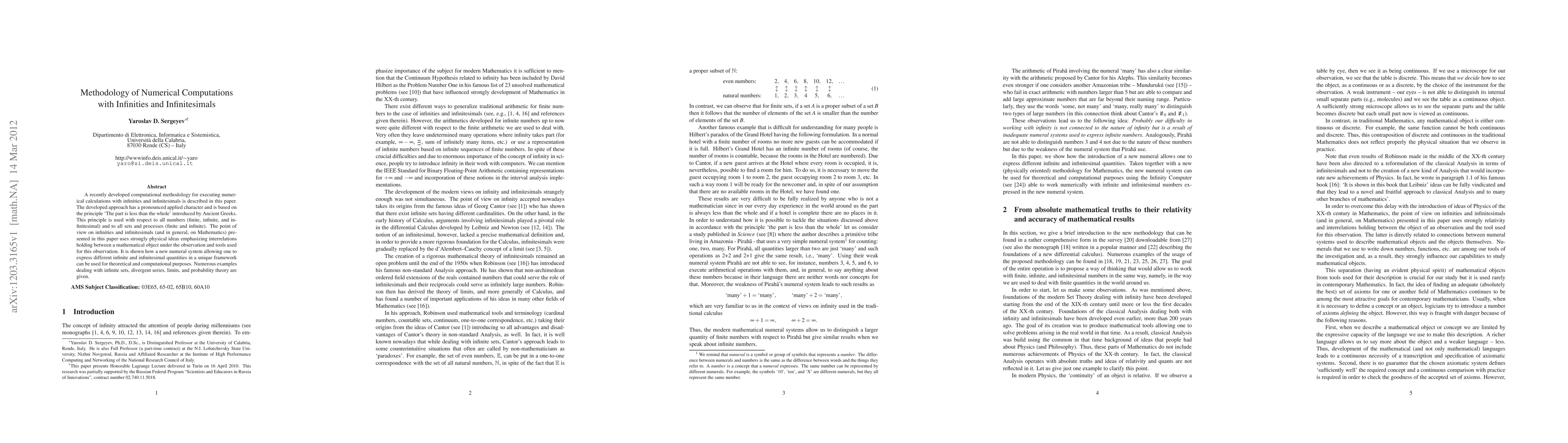 This paper introduces a novel computational methodology for numerical calculations involving infinities and infinitesimals, grounded in the ancient Greek principle "The part is less than the whole." It presents a numeral system for expressing infinite and infinitesimal quantities and demonstrates its application through examples in various mathematical fields.