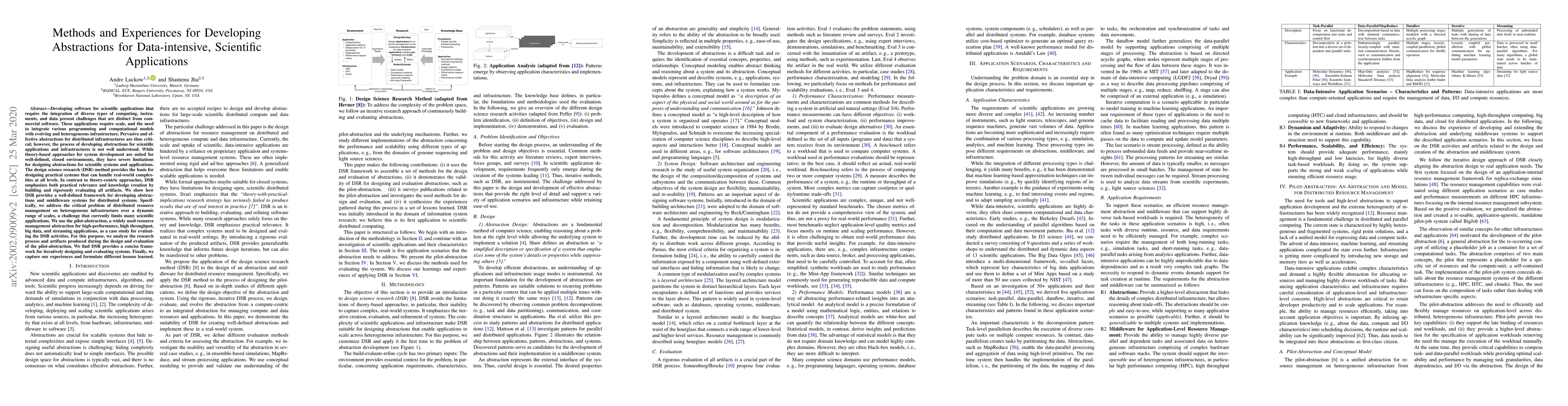 This paper discusses using design science research (DSR) to develop abstractions for scientific applications that integrate diverse computing and data types. It evaluates the pilot-abstraction for distributed resource management and finds DSR provides an effective iterative framework for practical system development and knowledge creation.
