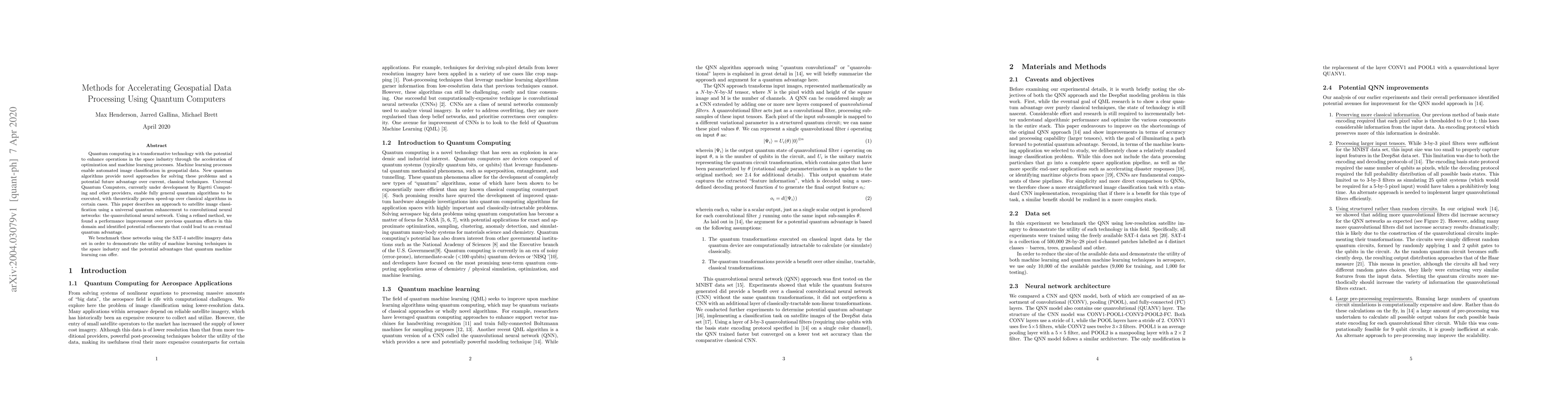This paper introduces a quantum machine learning approach that accelerates geospatial data processing using convolutional neural networks, demonstrating potential performance improvements over classical techniques.