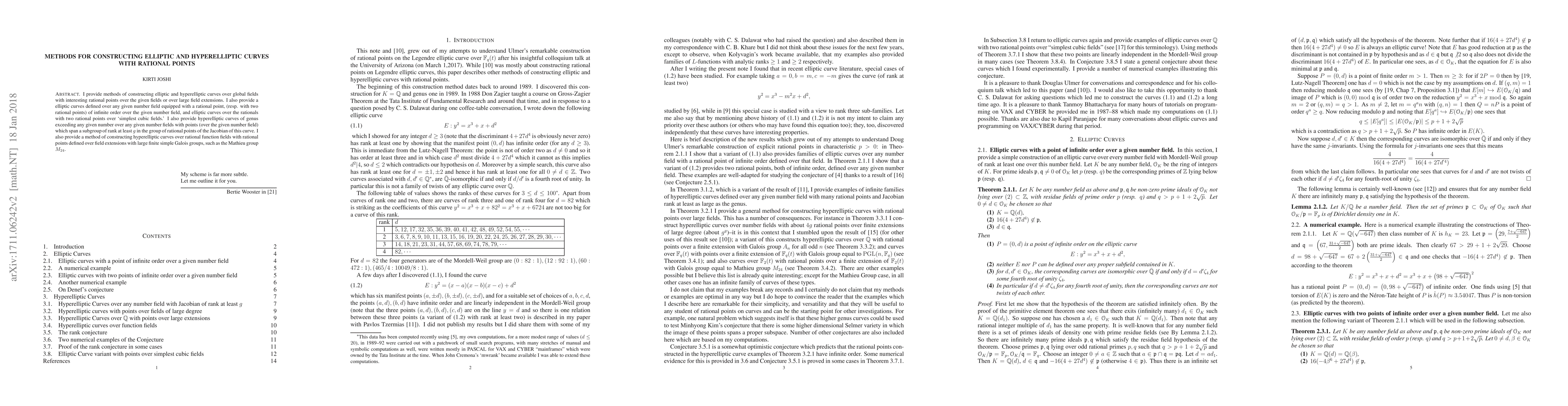 This paper presents methods for constructing elliptic and hyperelliptic curves over global fields, especially those with rational points. It focuses on creating curves with specific rational points, including those of infinite order, and hyperelliptic curves with a high genus that have points spanning a subgroup of significant rank.
