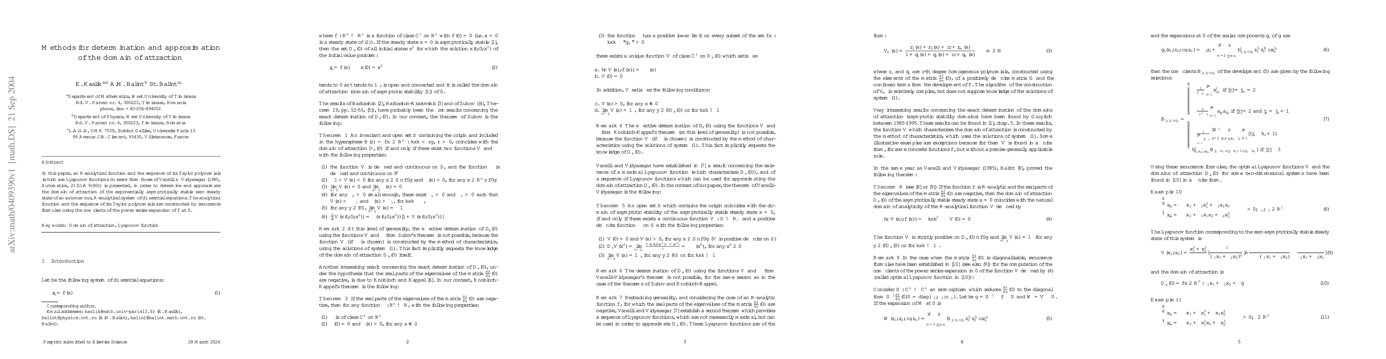 In this paper, an $\mathbb{R}$-analytical function and the sequence of its Taylor polynomials (which are Lyapunov functions different from those of Vanelli & Vidyasagar (1985, Automatica, 21(1):6 9--80)) is presented, in order to determine and approximate the domain of attraction of the exponentially asymptotically stable zero steady state of an autonomous, $\mathbb{R}$-analytical system of differential equations. The analytical function and the sequence of its Taylor polynomials are constructed by recurrence formulae using the coefficients of the power series expansion of $f$ at 0.