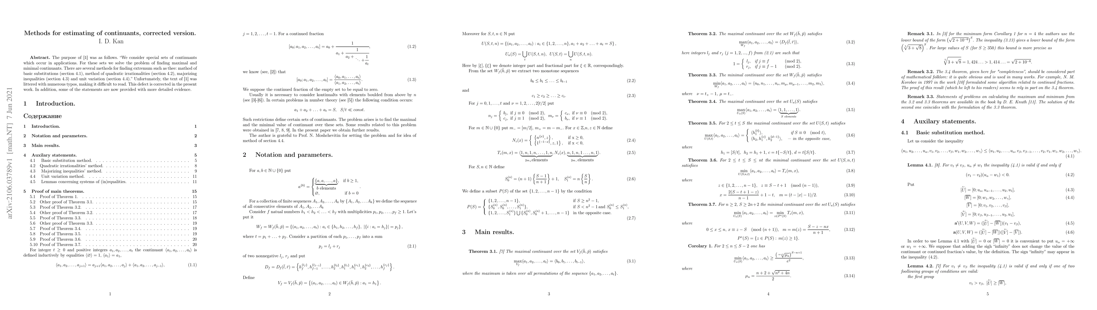 The purpose of [1] was as follows. ?We consider special sets of continuants which occur in applications. For these sets we solve the problem of finding maximal and minimal continuants. There are several methods for finding extremum such as thee: mathod of basic substitutions (section 4.1), method of quadratic irrationalities (section 4.2), majorizing inequalities (section 4.3) and unit variation (section 4.4).? Unfortunately, the text of [1] was littered with numerous typos, making it difficult to read. This defect is corrected in the present work. In addition, some of the statements are now provided with more detailed evidence.