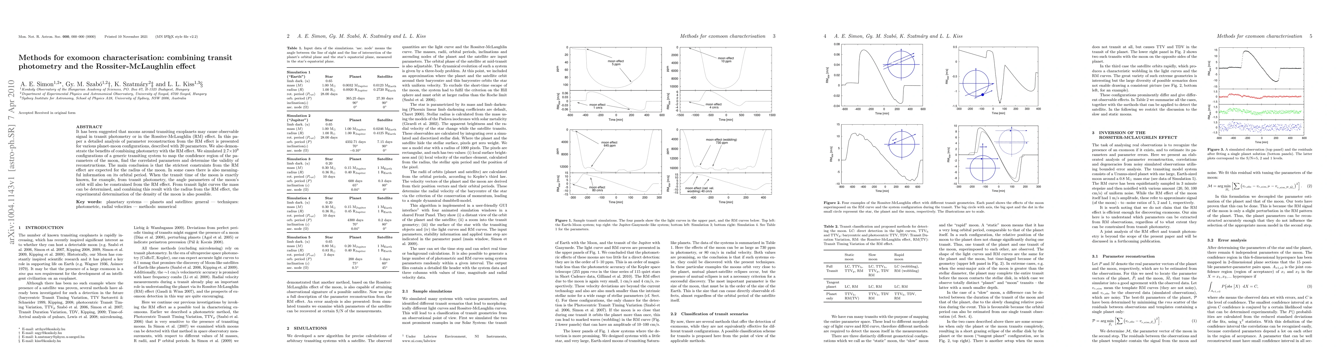 This paper explores methods for characterizing exomoons by combining transit photometry and the Rossiter-McLaughlin effect, demonstrating that the RM effect provides the strictest constraints on the moon's radius and, in some cases, its orbital period. Combining these techniques allows for the determination of the moon's mass and density.