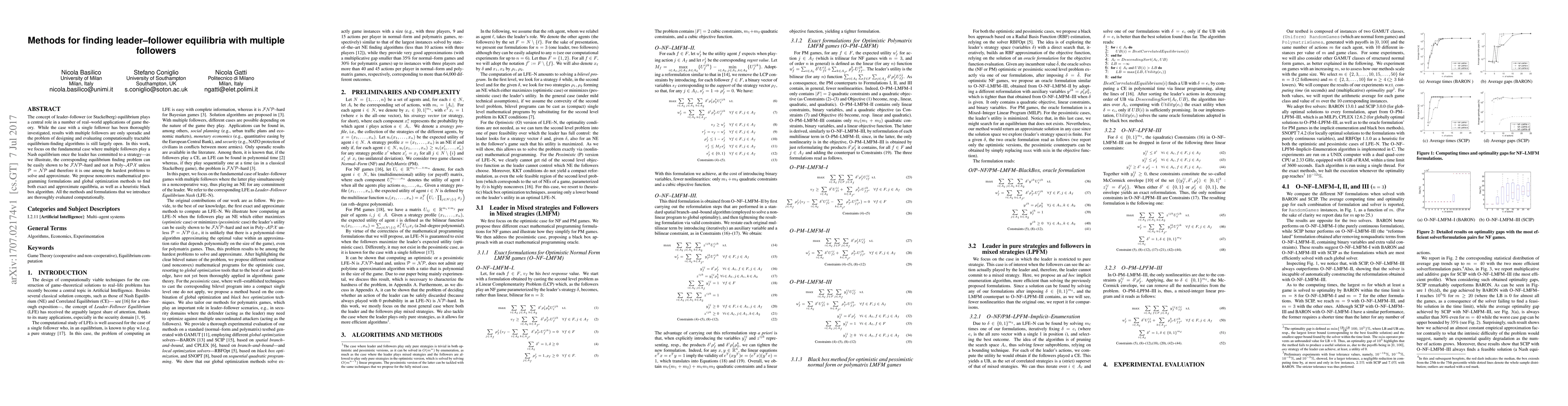 This paper investigates leader-follower equilibria in scenarios with multiple followers, demonstrating that finding such equilibria is computationally challenging. It proposes nonconvex mathematical programming formulations and optimization methods for both exact and approximate solutions, alongside a heuristic algorithm, and evaluates their performance.