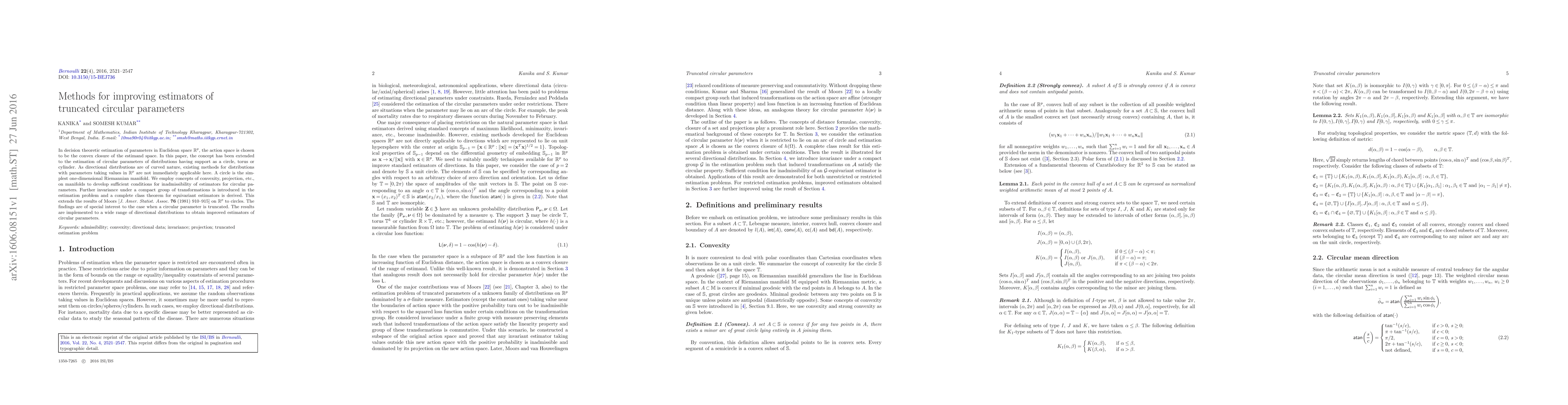 In decision theoretic estimation of parameters in Euclidean space $\mathbb{R}^p$, the action space is chosen to be the convex closure of the estimand space. In this paper, the concept has been extended to the estimation of circular parameters of distributions having support as a circle, torus or cylinder. As directional distributions are of curved nature, existing methods for distributions with parameters taking values in $\mathbb{R}^p$ are not immediately applicable here. A circle is the simplest one-dimensional Riemannian manifold. We employ concepts of convexity, projection, etc., on manifolds to develop sufficient conditions for inadmissibility of estimators for circular parameters. Further invariance under a compact group of transformations is introduced in the estimation problem and a complete class theorem for equivariant estimators is derived. This extends the results of Moors [J. Amer. Statist. Assoc. 76 (1981) 910-915] on $\mathbb{R}^p$ to circles. The findings are of special interest to the case when a circular parameter is truncated. The results are implemented to a wide range of directional distributions to obtain improved estimators of circular parameters.
