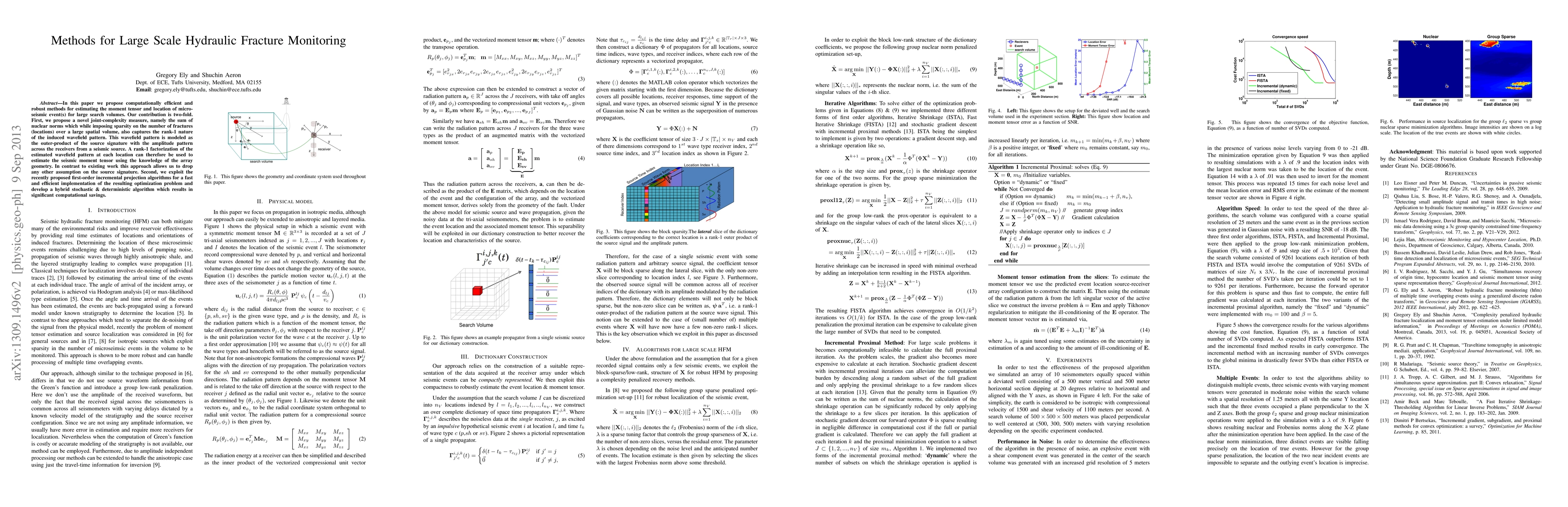In this paper we propose computationally efficient and robust methods for estimating the moment tensor and location of micro-seismic event(s) for large search volumes. Our contribution is two-fold. First, we propose a novel joint-complexity measure, namely the sum of nuclear norms which while imposing sparsity on the number of fractures (locations) over a large spatial volume, also captures the rank-1 nature of the induced wavefield pattern. This wavefield pattern is modeled as the outer-product of the source signature with the amplitude pattern across the receivers from a seismic source. A rank-1 factorization of the estimated wavefield pattern at each location can therefore be used to estimate the seismic moment tensor using the knowledge of the array geometry. In contrast to existing work this approach allows us to drop any other assumption on the source signature. Second, we exploit the recently proposed first-order incremental projection algorithms for a fast and efficient implementation of the resulting optimization problem and develop a hybrid stochastic & deterministic algorithm which results in significant computational savings.
