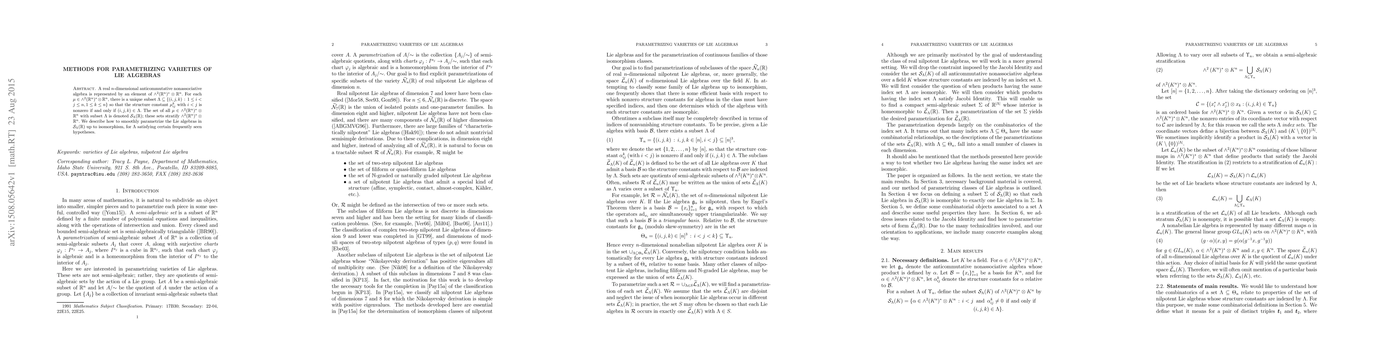 Summary: This paper outlines techniques for smoothly parametrizing families of nilpotent Lie algebras, providing a systematic approach to understanding their structure. The methods facilitate deeper insights into the geometric and algebraic properties of these Lie algebras.