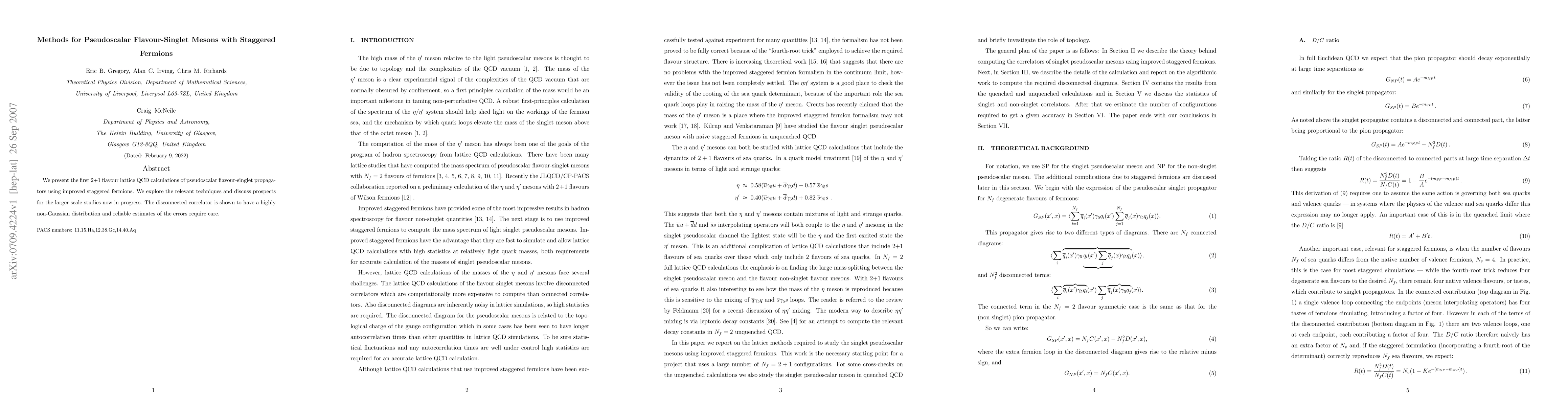 This paper reports on the first 2+1 flavour lattice QCD calculations of pseudoscalar flavour-singlet propagators using improved staggered fermions, highlighting the non-Gaussian nature of the disconnected correlator and the need for careful error estimation. The study discusses techniques and prospects for future larger-scale investigations.