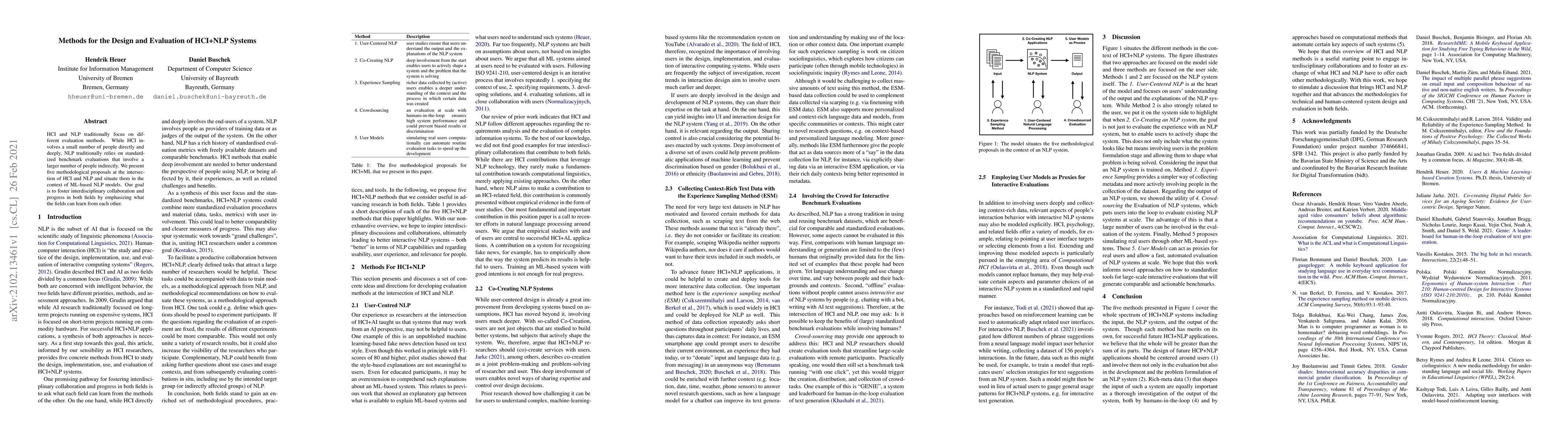 This paper proposes five methodologies to bridge the evaluation methods of HCI and NLP, emphasizing interdisciplinary collaboration and progress by highlighting mutual learning opportunities between these fields. The focus is on integrating ML-based NLP models with HCI's deep, direct user evaluations.