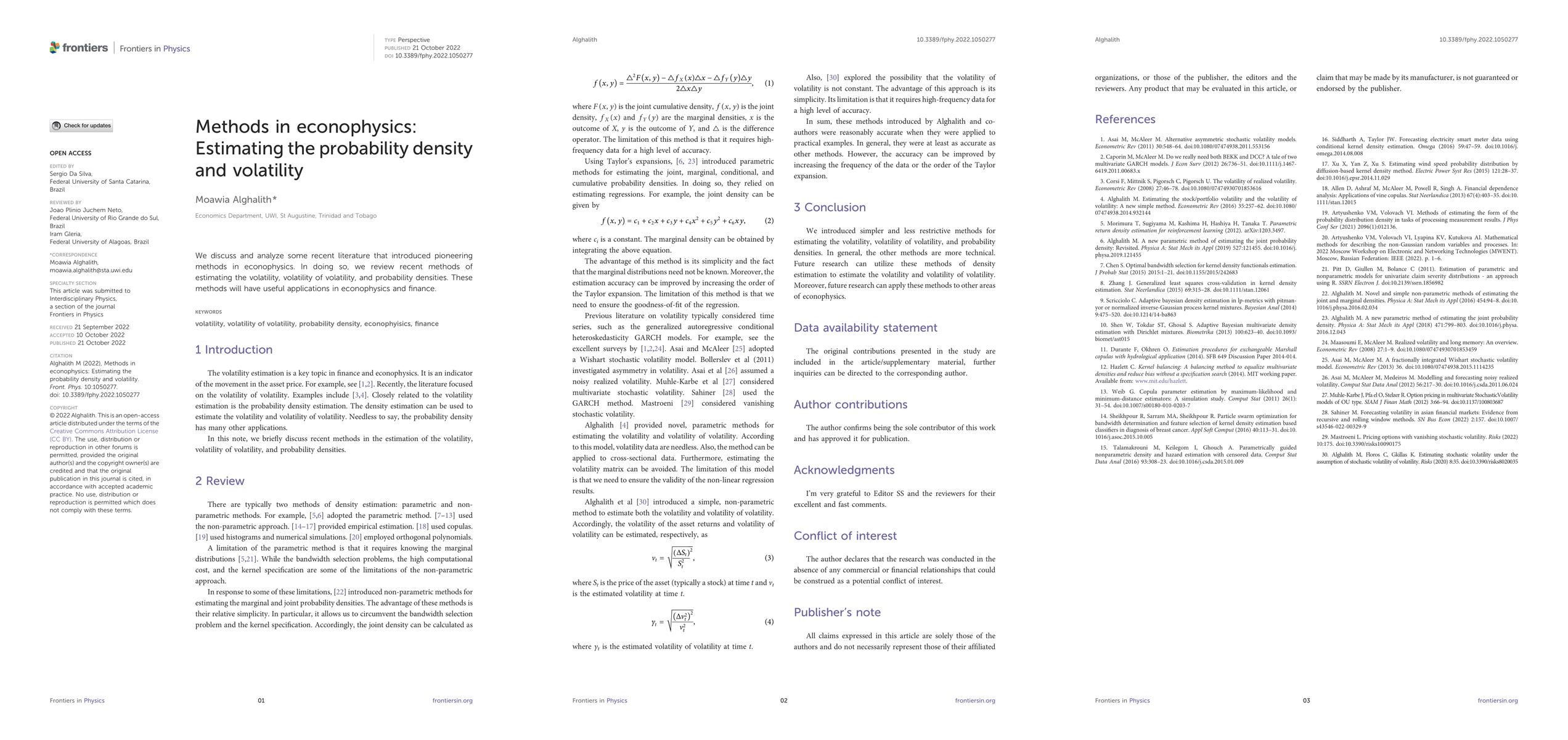 We discuss and analyze some recent literature that introduced pioneering methods in econophysics. In doing so, we review recent methods of estimating the volatility, volatility of volatility, and probability densities. These methods will have useful applications in econophysics and finance.