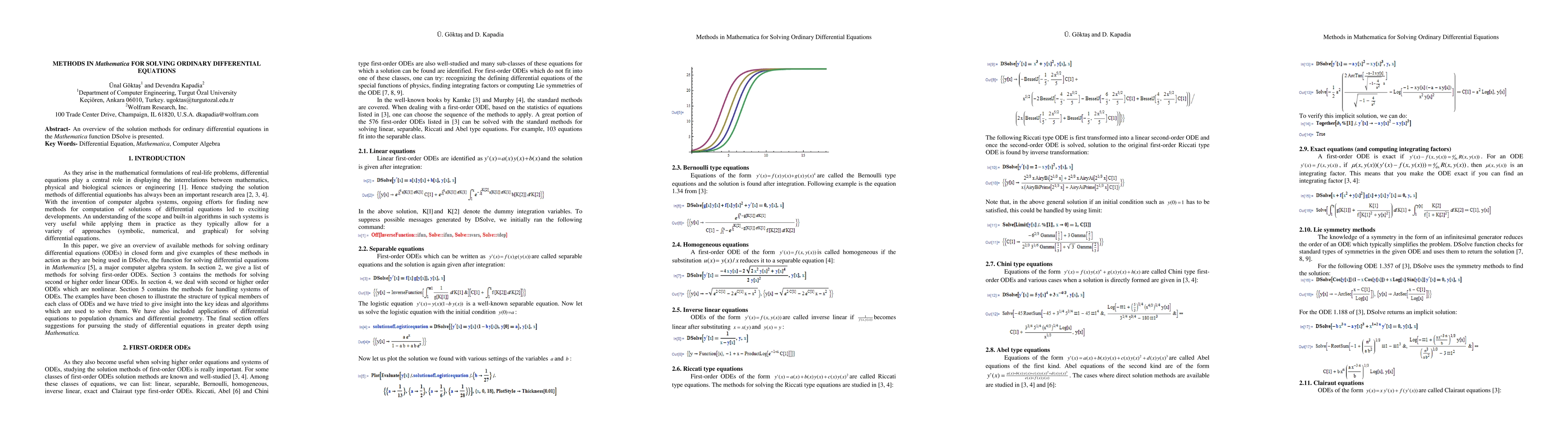 Summary: This paper provides an overview of the techniques used by Mathematica's DSolve function to solve ordinary differential equations, highlighting its capabilities and methodologies.
