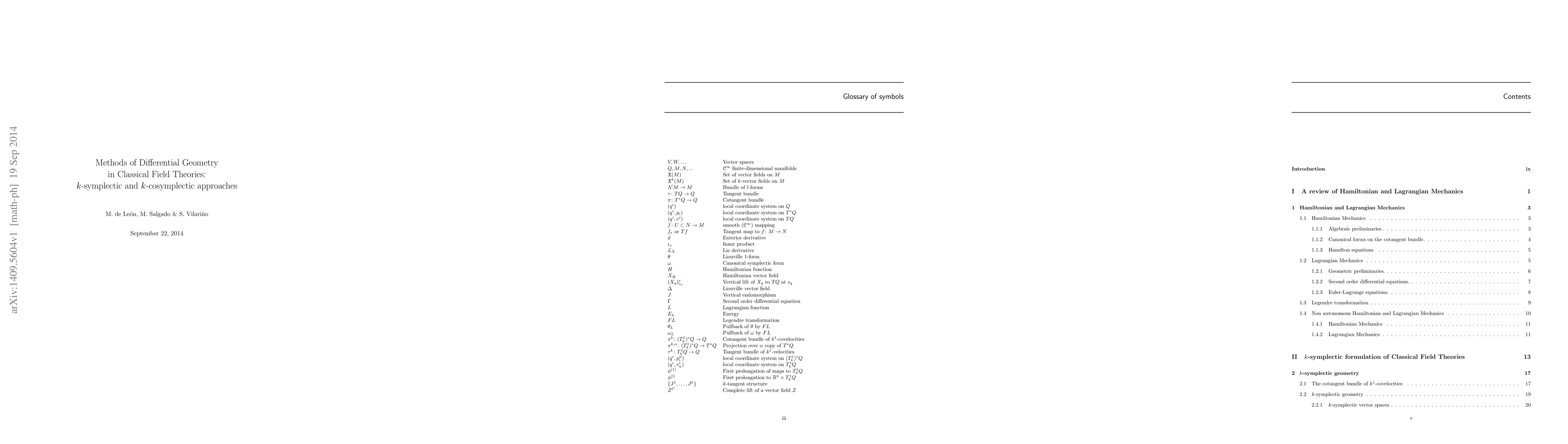 This book is devoted to review two of the most relevant approaches to the study of classical field theories of first order, say k-symplectic and k-cosymplectic. In the last part, we relate the k-symplectic and k-cosymplectic manifolds with the multisymplectic theory.