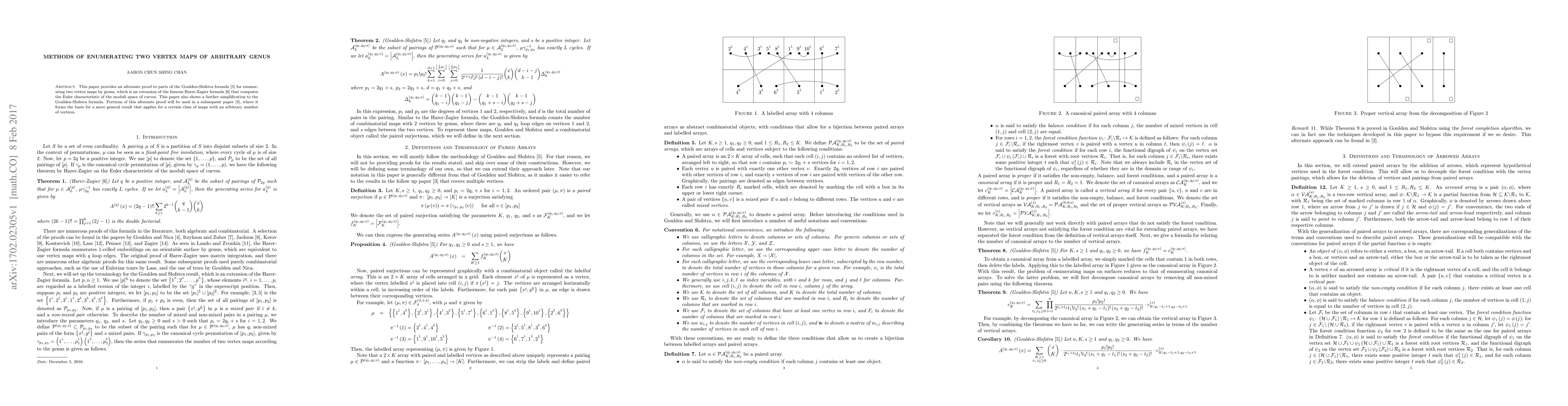 This paper provides an alternate proof to the Goulden-Slofstra formula for enumerating two vertex maps of arbitrary genus, simplifying the calculation and providing a basis for further research.