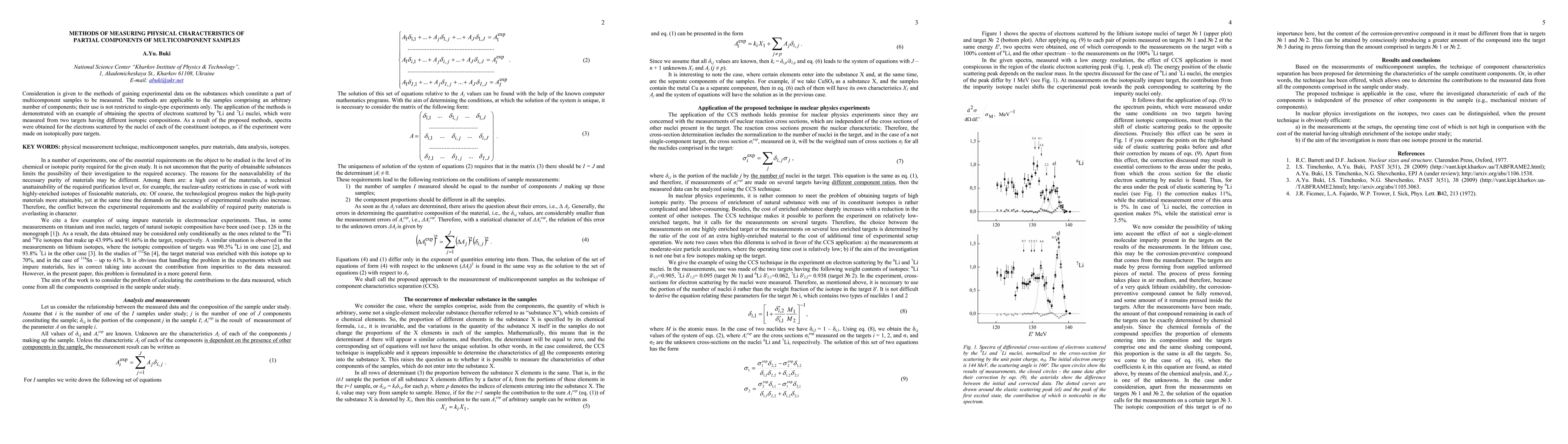 This paper discusses methods for extracting experimental data from partial components within multicomponent samples, applicable to any number of components and various types of experiments. An example demonstrates the method's effectiveness in obtaining spectra of electrons scattered by 6Li and 7Li nuclei from different isotopic targets, achieving results as if conducted on isotopically pure targets.