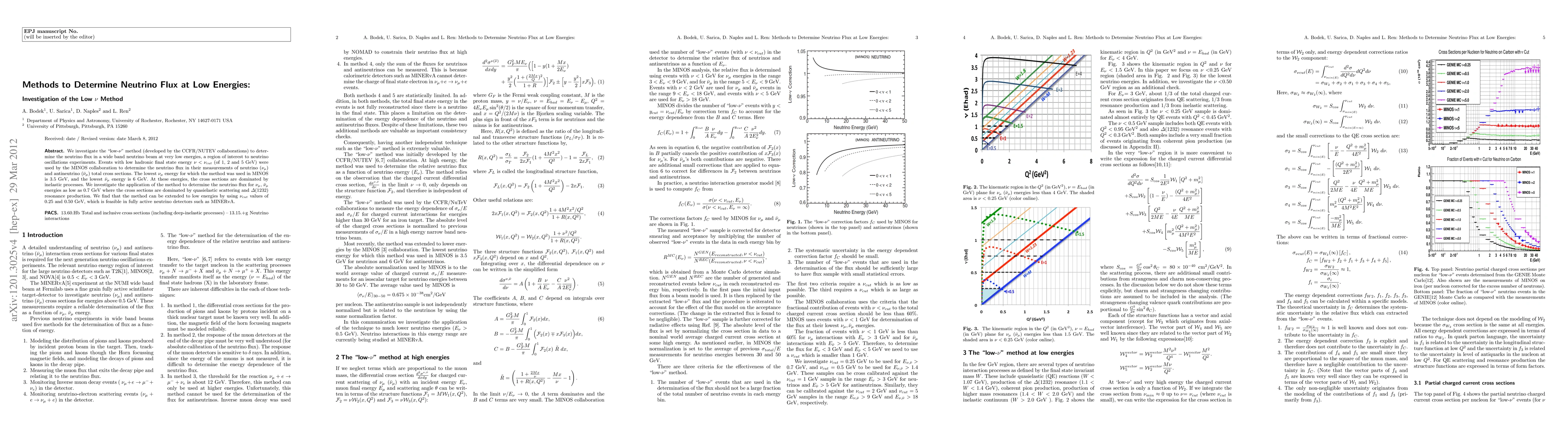 This paper investigates the "low-$\nu$" method for determining neutrino flux at very low energies, extending its application to energies as low as 0.7 GeV where quasielastic scattering dominates. The method is shown to be feasible using $\nu_{cut}$ values of 0.25 and 0.50 GeV, suitable for fully active neutrino detectors.
