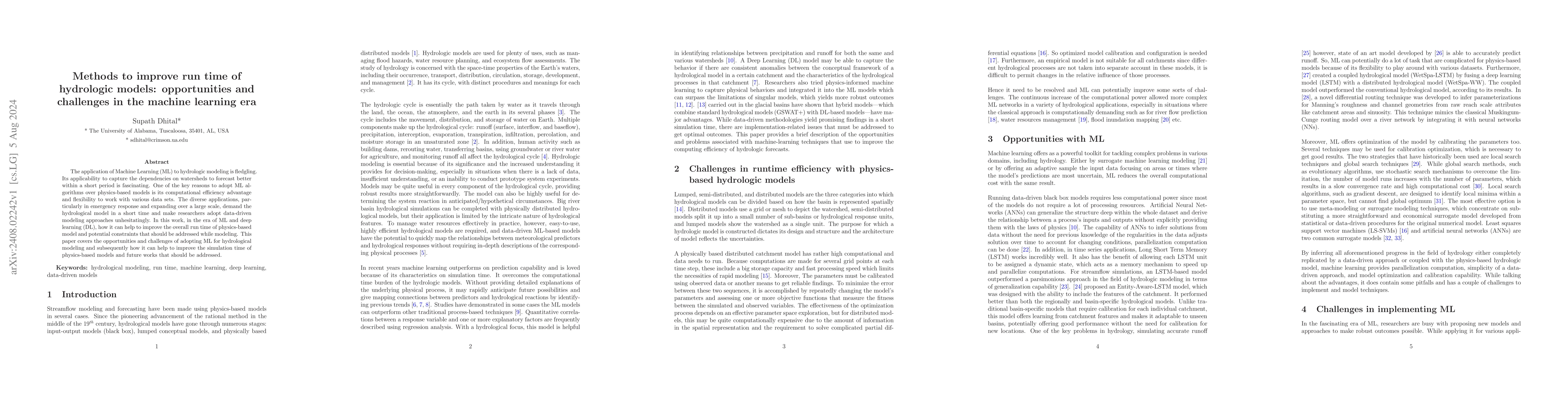 This paper explores the potential of machine learning (ML) and deep learning (DL) to enhance the computational efficiency of hydrologic models, emphasizing their advantages over traditional physics-based approaches. It also discusses the challenges and future directions for effectively integrating ML techniques to improve model run times.