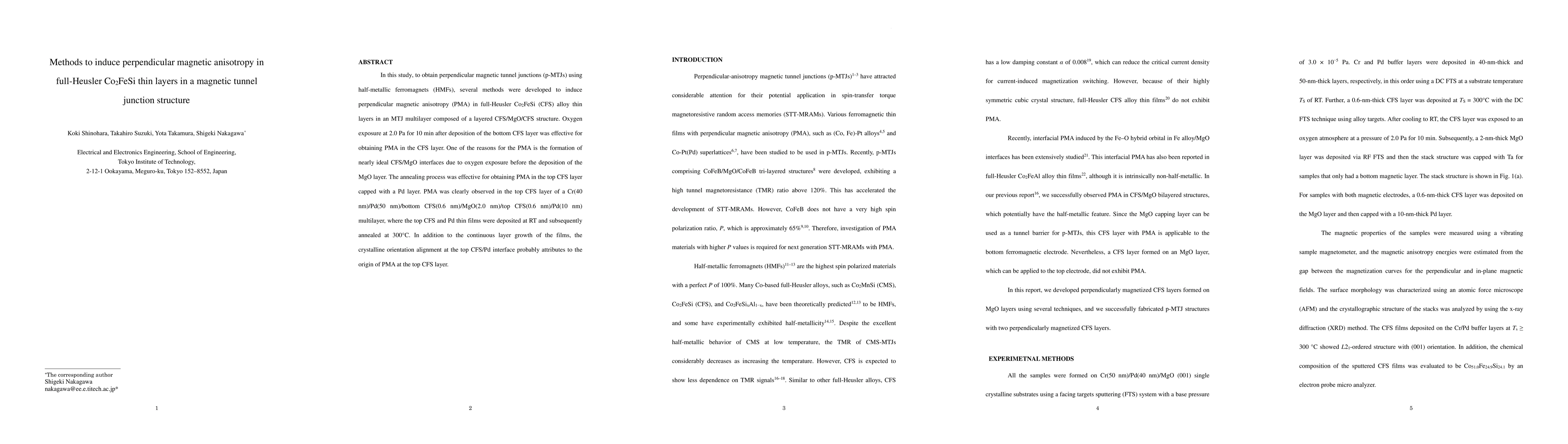 This study explores methods to induce perpendicular magnetic anisotropy (PMA) in full-Heusler Co2FeSi thin layers within magnetic tunnel junctions, finding that oxygen exposure and annealing processes effectively enhance PMA through improved interface formation and crystalline orientation alignment.