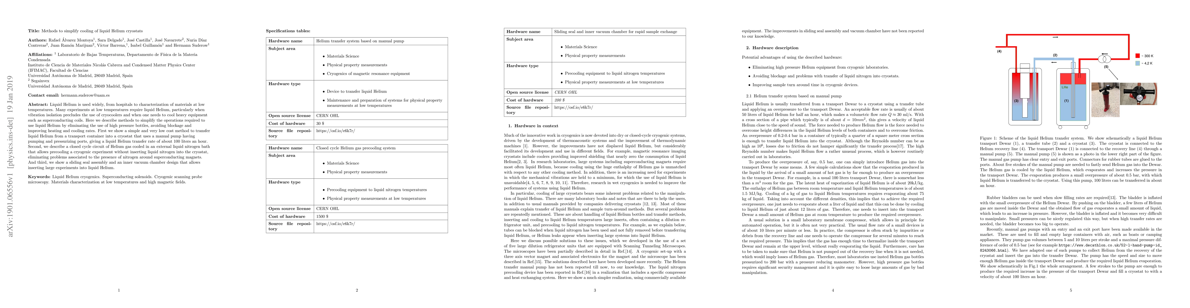 This paper proposes cost-effective methods to simplify the use of liquid Helium in cryostats, including a manual pump for efficient transfer, a closed cycle gas cooling system for precooling, and a sliding seal assembly for easy insertion of large experiments. These innovations aim to enhance operational efficiency and safety in cryogenic applications.