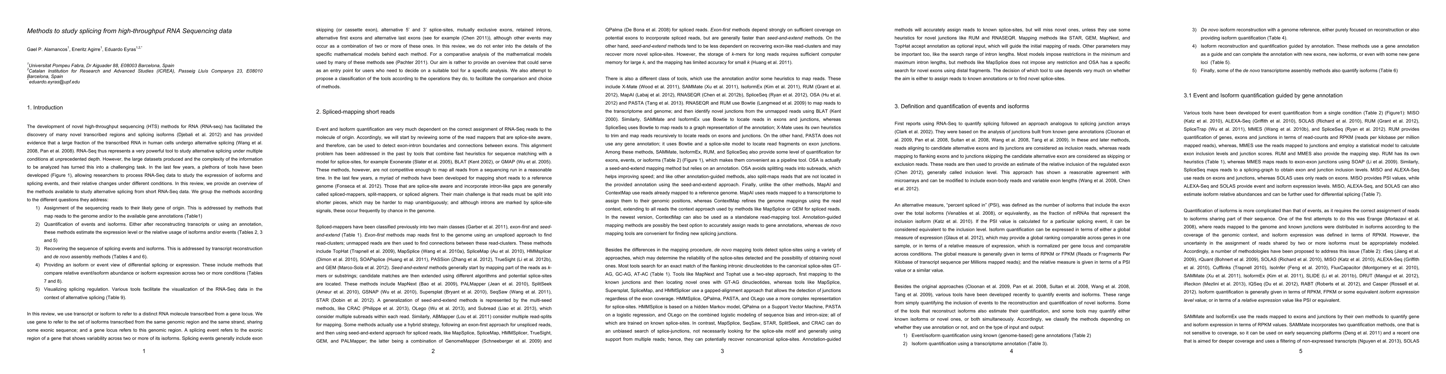 The review synthesizes existing methods for splicing analysis from RNA-Seq data, providing a structured classification and comparison, which is valuable for researchers navigating the complex landscape of available tools.