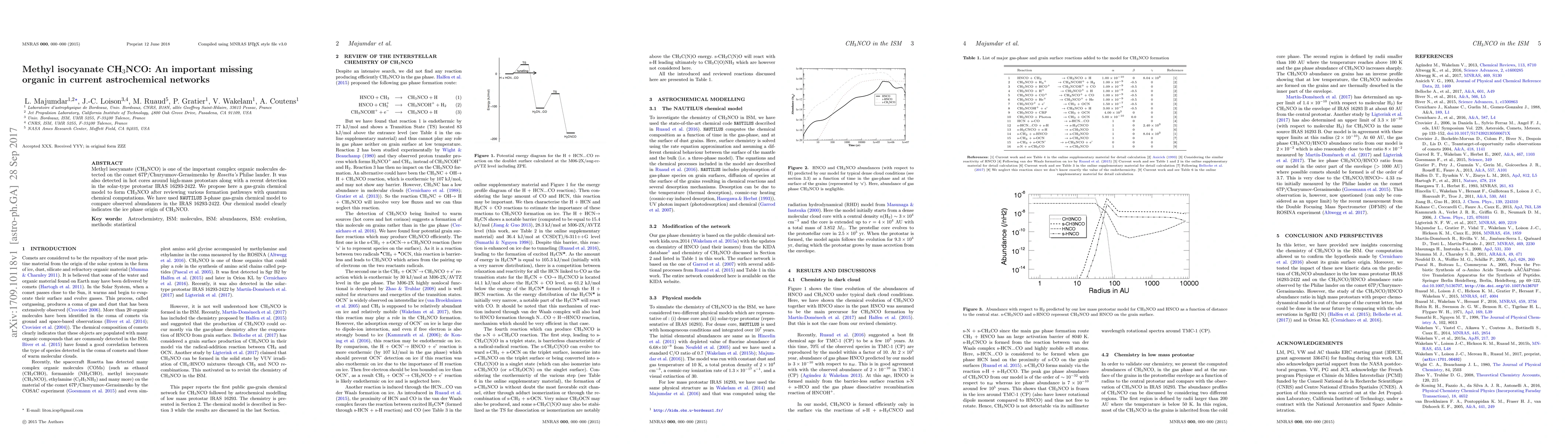 Methyl isocyanate (CH3NCO) is one of the important complex organic molecules detected on the comet 67P/Churyumov-Gerasimenko by Rosetta's Philae lander. It was also detected in hot cores around high-mass protostars along with a recent detection in the solar-type protostar IRAS 16293-2422. We propose here a gas-grain chemical model to form CH3NCO after reviewing various formation pathways with quantum chemical computations. We have used NAUTILUS 3-phase gas-grain chemical model to compare observed abundances in the IRAS 16293-2422. Our chemical model clearly indicates the ice phase origin of CH3NCO.