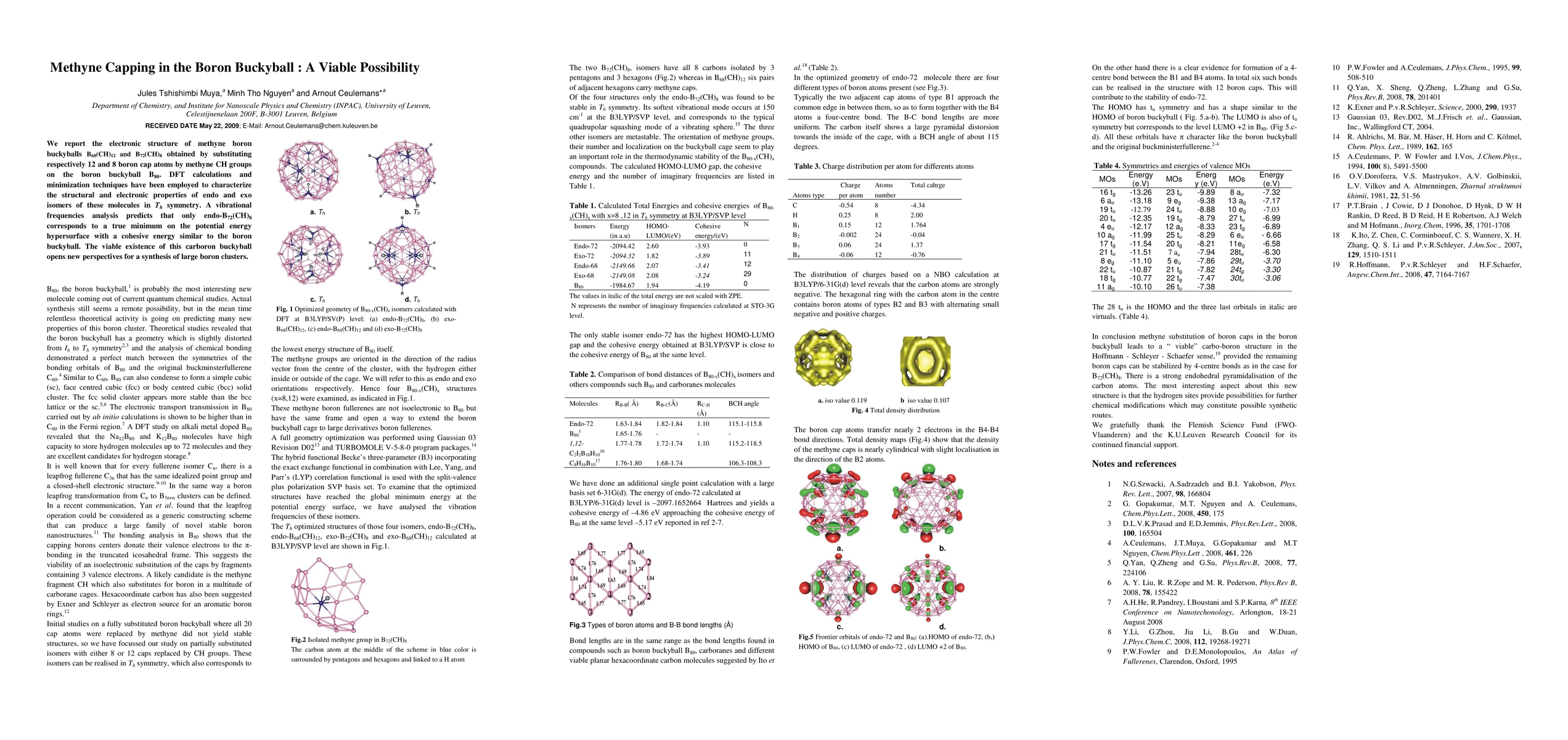 We report the electronic structure of methyne boron buckyballs B68(CH)12 and B72(CH)8 obtained by substituting respectively 12 and 8 boron cap atoms by methyne CH groups on the boron buckyball B80. DFT calculations and minimization techniques have been employed to characterize the structural and electronic properties of endo and exo isomers of these molecules in Th symmetry. A vibrational frequencies analysis predicts that only endo-B72(CH)8 corresponds to a true minimum on the potential energy hypersurface with a cohesive energy similar to the boron buckyball. The viable existence of this carboron buckyball opens new perspectives for a synthesis of large boron clusters.