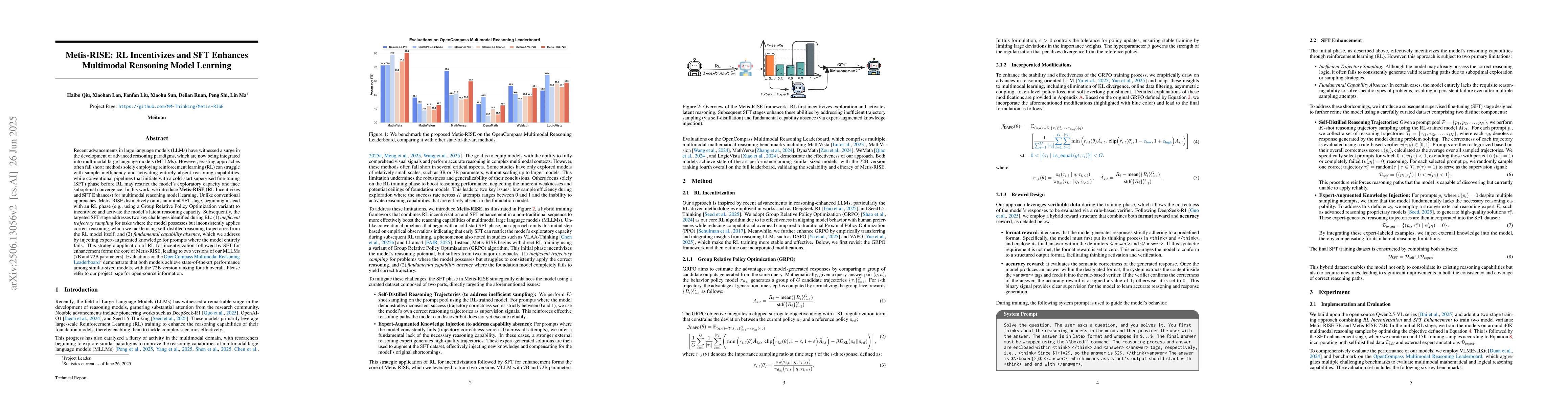 Metis-RISE introduces a novel training strategy that combines RL for incentivizing reasoning and SFT for enhancing capabilities, leading to superior multimodal reasoning performance.