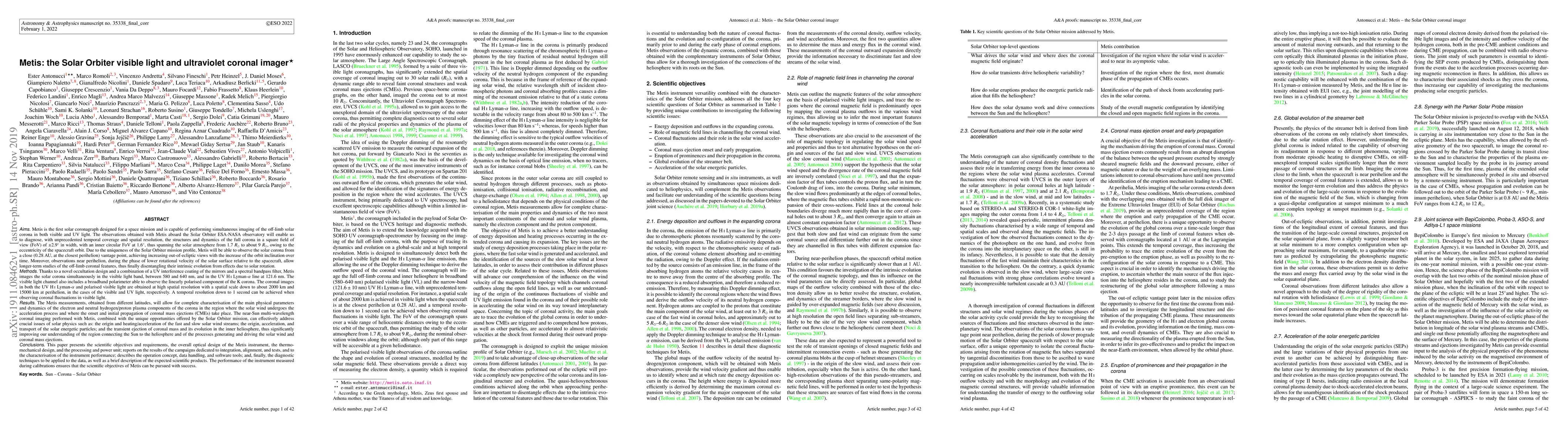 Metis, aboard the Solar Orbiter, is a pioneering solar coronagraph that captures simultaneous visible and UV images of the solar corona, providing unprecedented temporal and spatial resolution. This allows for detailed studies of coronal structures and dynamics from 1.7 to 9 $R_\odot$, enhancing our understanding of solar wind acceleration and coronal mass ejections.