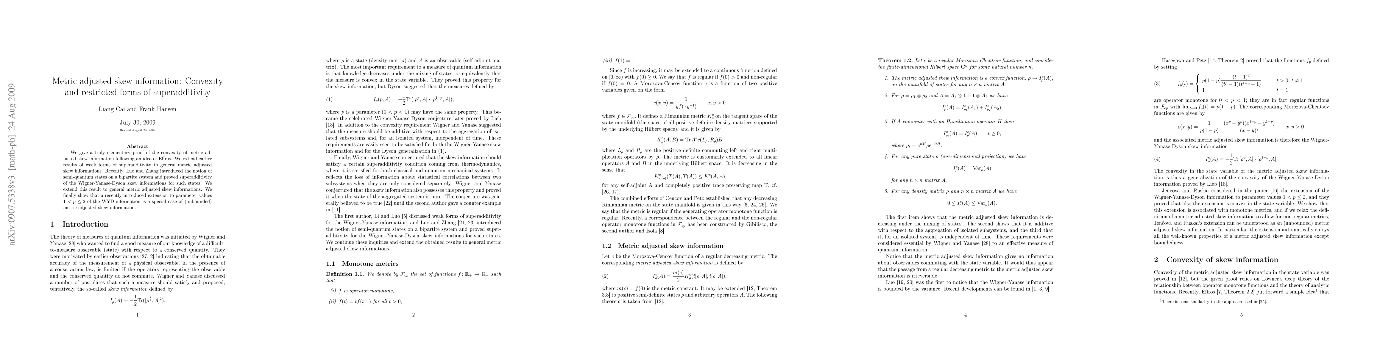 This paper provides an elementary proof of the convexity of metric adjusted skew information and extends superadditivity results to general forms. It also demonstrates that a recent extension of Wigner-Yanase-Dyson skew information for semi-quantum states is a special case of metric adjusted skew information.