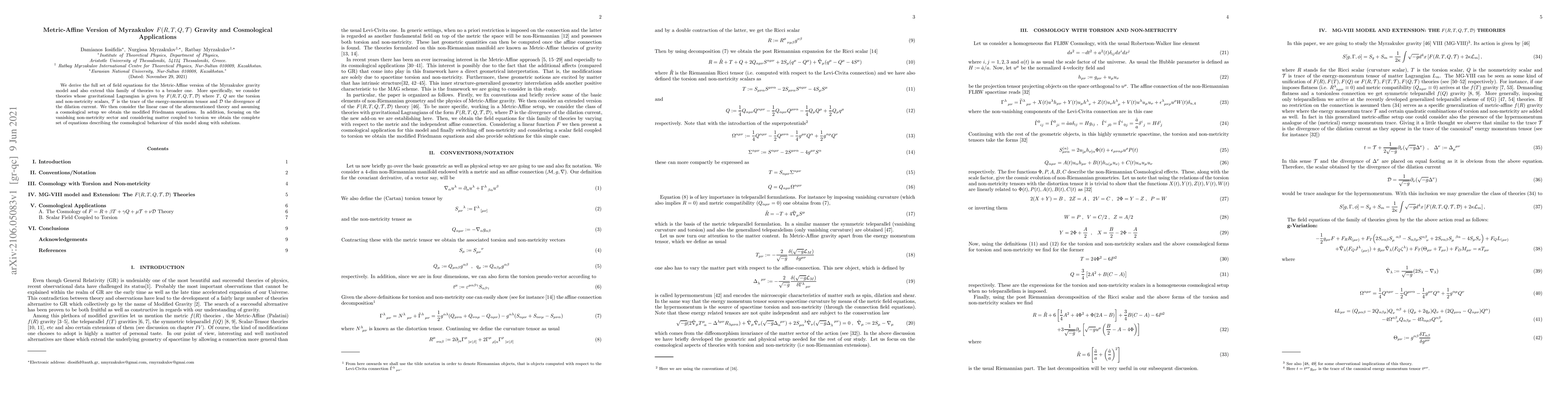 We derive the full set of field equations for the Metric-Affine version of the Myrzakulov gravity model and also extend this family of theories to a broader one. More specifically, we consider theories whose gravitational Lagrangian is given by $F(R,T,Q, {\cal T},{\cal D})$ where $T$, $Q$ are the torsion and non-metricity scalars, ${\cal T}$ is the trace of the energy-momentum tensor and ${\cal D}$ the divergence of the dilation current. We then consider the linear case of the aforementioned theory and assuming a cosmological setup we obtain the modified Friedmann equations. In addition, focusing on the vanishing non-metricity sector and considering matter coupled to torsion we obtain the complete set of equations describing the cosmological behaviour of this model along with solutions.