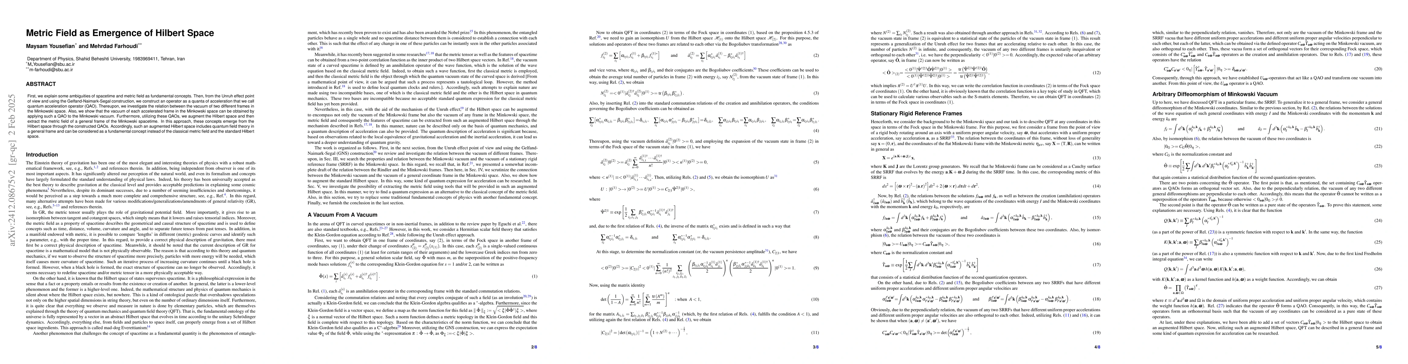 First, we explain some ambiguities of spacetime and metric field as fundamental concepts. Then, from the Unruh effect point of view and using the Gelfand-Naimark-Segal construction, we construct an operator as a quanta of acceleration that we call quantum acceleration operator (QAO). Thereupon, we investigate the relation between the vacuum of two different frames in the Minkowski space. Also, we show that the vacuum of each accelerated frame in the Minkowski space can be obtained by applying such a QAO to the Minkowski vacuum. Furthermore, utilizing these QAOs, we augment the Hilbert space and then extract the metric field of a general frame of the Minkowski spacetime. In this approach, these concepts emerge from the Hilbert space through the constructed QAOs. Accordingly, such an augmented Hilbert space includes quantum field theory in a general frame and can be considered as a fundamental concept instead of the classical metric field and the standard Hilbert space.