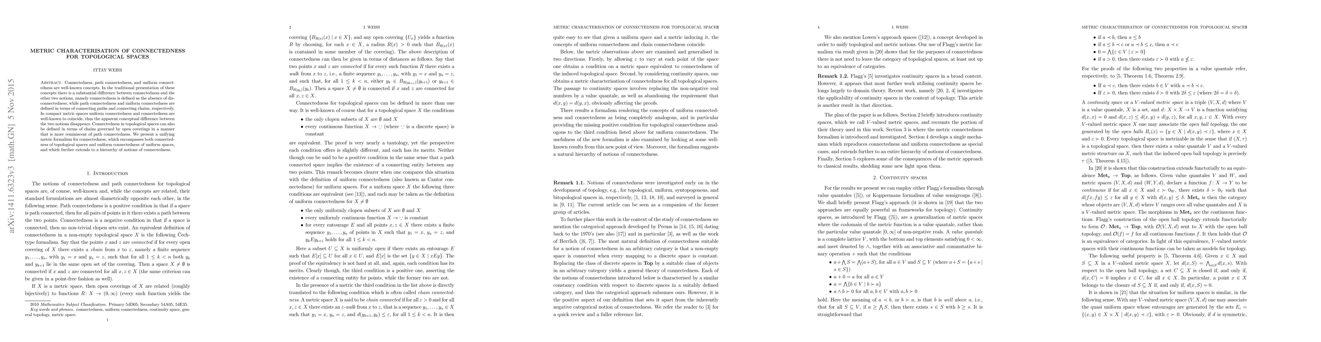 Connectedness, path connectedness, and uniform connectedness are well-known concepts. In the traditional presentation of these concepts there is a substantial difference between connectedness and the other two notions, namely connectedness is defined as the absence of disconnectedness, while path connectedness and uniform connectedness are defined in terms of connecting paths and connecting chains, respectively. In compact metric spaces uniform connectedness and connectedness are well-known to coincide, thus the apparent conceptual difference between the two notions disappears. Connectedness in topological spaces can also be defined in terms of chains governed by open coverings in a manner that is more reminiscent of path connectedness. We present a unifying metric formalism for connectedness, which encompasses both connectedness of topological spaces and uniform connectedness of uniform spaces, and which further extends to a hierarchy of notions of connectedness.