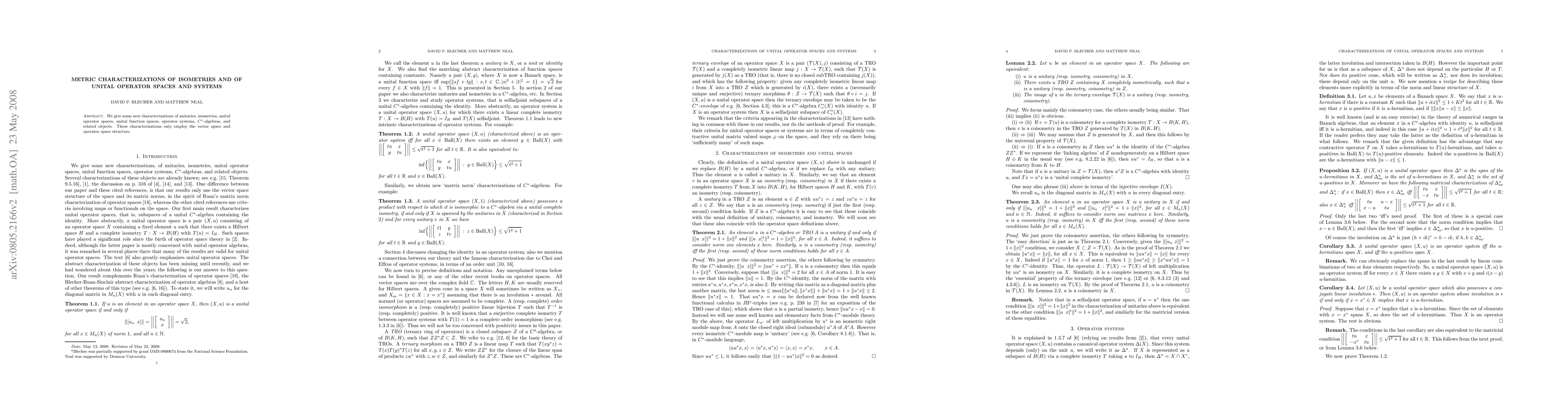 Summary: This paper presents new metric characterizations of unitaries, isometries, and various unital operator spaces and systems, relying solely on their vector and operator space structures. These findings enhance the understanding of the intrinsic properties of these mathematical objects.