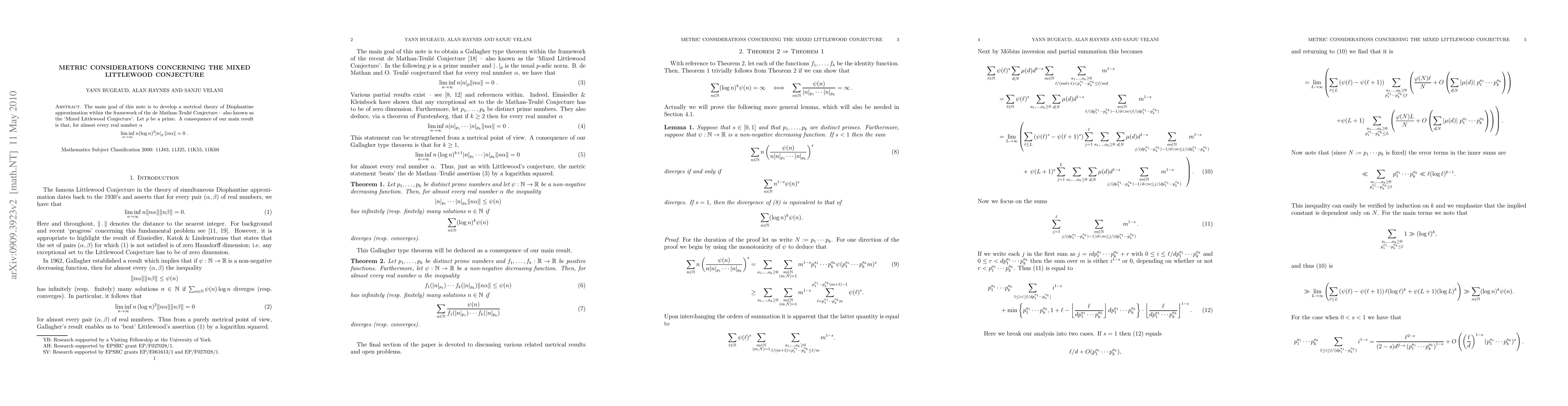 The main goal of this note is to develop a metrical theory of Diophantine approximation within the framework of the de Mathan-Teulie Conjecture, also known as the `Mixed Littlewood Conjecture'. Let p be a prime. A consequence of our main result is that, for almost every real number \alpha, \liminf_{n\rar\infty}n(\log n)^2|n|_p\|n\alpha\|=0.