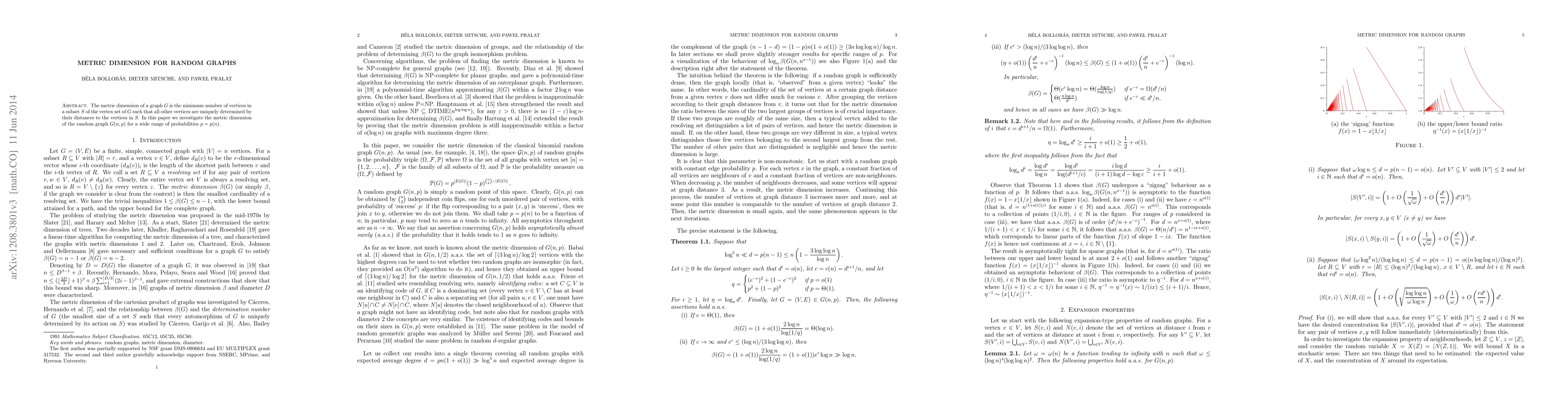 This paper investigates the metric dimension of random graphs, finding that it scales with the number of vertices, and provides insights into the behavior of this measure as the graph size increases.