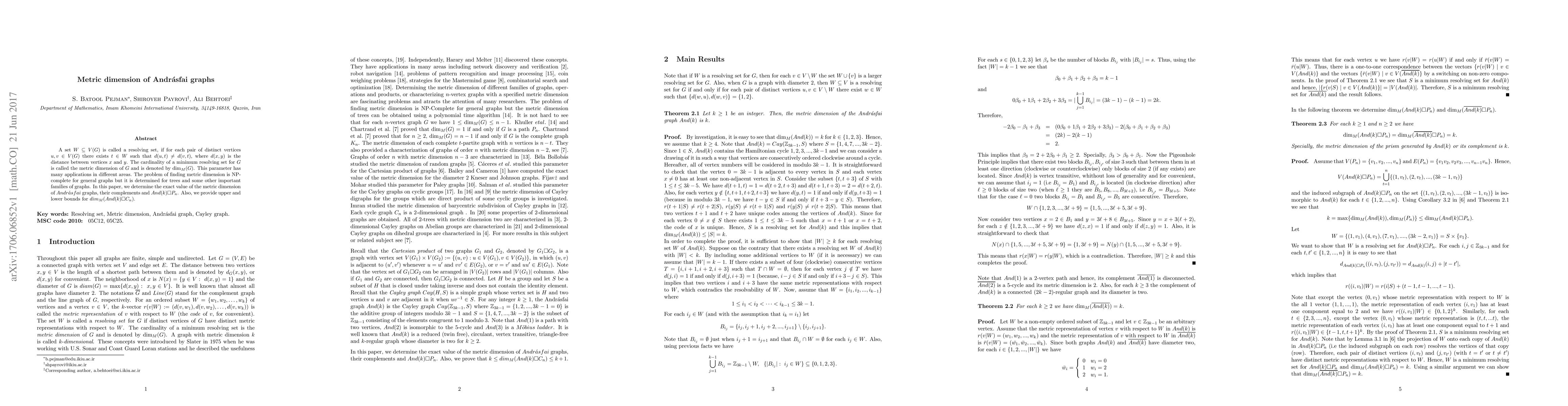 The paper presents a detailed proof of the metric dimension for Andrasfai graphs and their Cartesian products with paths and cycles, extending previous work on Cayley graphs.