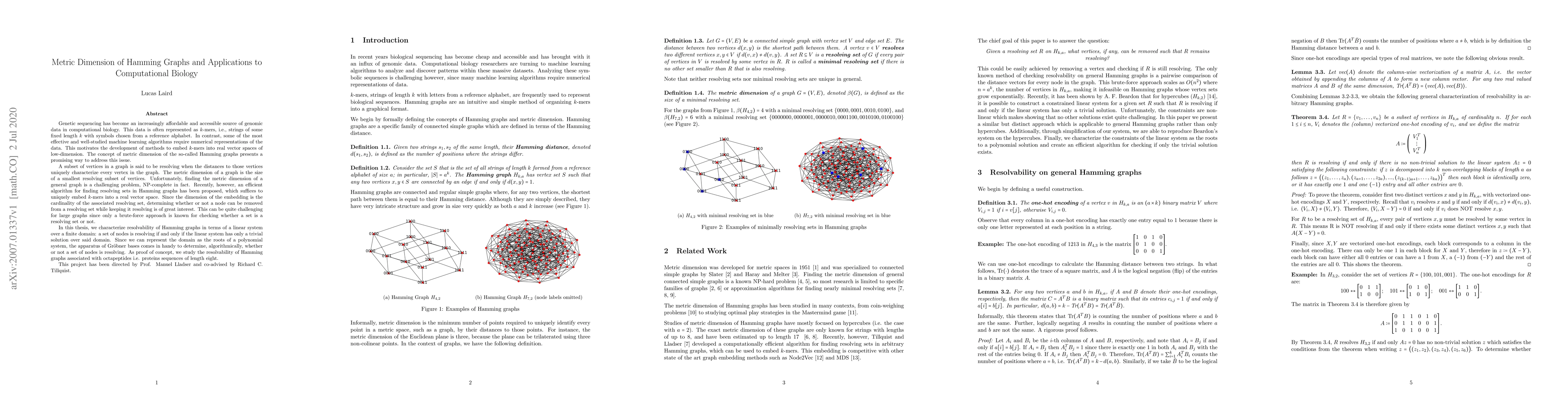 Genetic sequencing has become an increasingly affordable and accessible source of genomic data in computational biology. This data is often represented as $k$-mers, i.e., strings of some fixed length $k$ with symbols chosen from a reference alphabet. In contrast, some of the most effective and well-studied machine learning algorithms require numerical representations of the data. The concept of metric dimension of the so-called Hamming graphs presents a promising way to address this issue. A subset of vertices in a graph is said to be resolving when the distances to those vertices uniquely characterize every vertex in the graph. The metric dimension of a graph is the size of a smallest resolving subset of vertices. Finding the metric dimension of a general graph is a challenging problem, NP-complete in fact. Recently, an efficient algorithm for finding resolving sets in Hamming graphs has been proposed, which suffices to uniquely embed $k$-mers into a real vector space. Since the dimension of the embedding is the cardinality of the associated resolving set, determining whether or not a node can be removed from a resolving set while keeping it resolving is of great interest. This can be quite challenging for large graphs since only a brute-force approach is known for checking whether a set is a resolving set or not. In this thesis, we characterize resolvability of Hamming graphs in terms of a linear system over a finite domain: a set of nodes is resolving if and only if the linear system has only a trivial solution over said domain. We can represent the domain as the roots of a polynomial system so the apparatus of Gr\"obner bases comes in handy to determine, whether or not a set of nodes is resolving. As proof of concept, we study the resolvability of Hamming graphs associated with octapeptides i.e. proteins sequences of length eight.