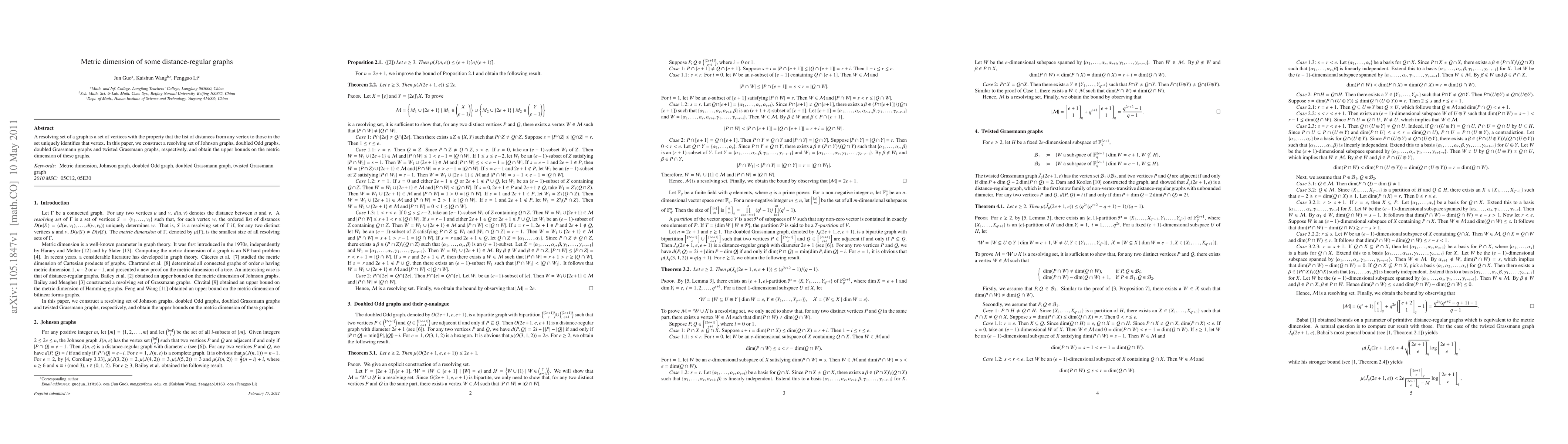 Researchers have found upper bounds on the metric dimension of certain distance-regular graphs, including Johnson graphs, doubled Odd graphs, and Grassmann graphs, using resolving sets.