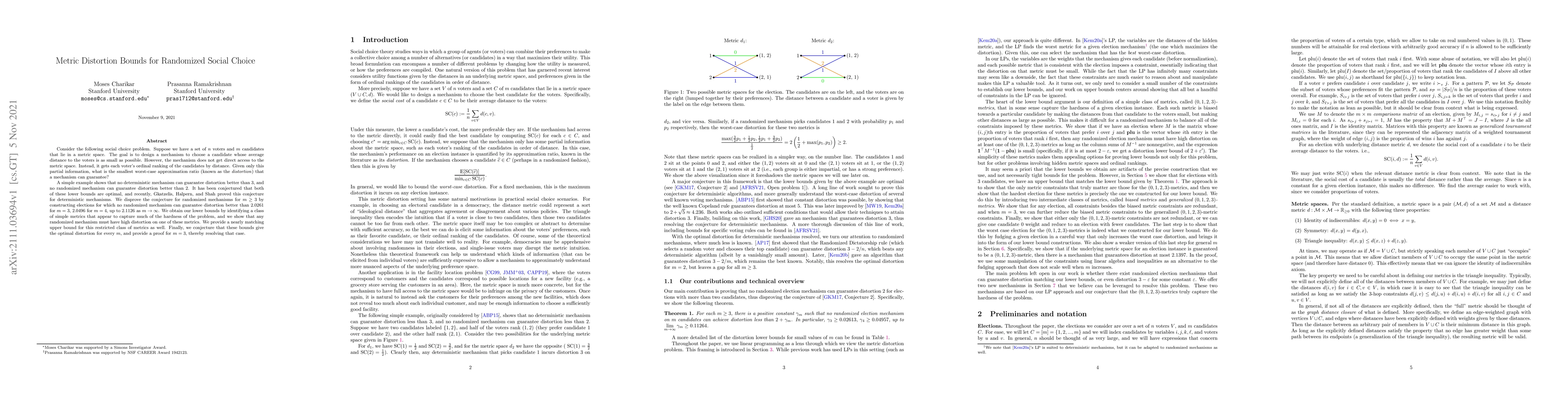 Consider the following social choice problem. Suppose we have a set of $n$ voters and $m$ candidates that lie in a metric space. The goal is to design a mechanism to choose a candidate whose average distance to the voters is as small as possible. However, the mechanism does not get direct access to the metric space. Instead, it gets each voter's ordinal ranking of the candidates by distance. Given only this partial information, what is the smallest worst-case approximation ratio (known as the distortion) that a mechanism can guarantee? A simple example shows that no deterministic mechanism can guarantee distortion better than $3$, and no randomized mechanism can guarantee distortion better than $2$. It has been conjectured that both of these lower bounds are optimal, and recently, Gkatzelis, Halpern, and Shah proved this conjecture for deterministic mechanisms. We disprove the conjecture for randomized mechanisms for $m \geq 3$ by constructing elections for which no randomized mechanism can guarantee distortion better than $2.0261$ for $m = 3$, $2.0496$ for $m = 4$, up to $2.1126$ as $m \to \infty$. We obtain our lower bounds by identifying a class of simple metrics that appear to capture much of the hardness of the problem, and we show that any randomized mechanism must have high distortion on one of these metrics. We provide a nearly matching upper bound for this restricted class of metrics as well. Finally, we conjecture that these bounds give the optimal distortion for every $m$, and provide a proof for $m = 3$, thereby resolving that case.